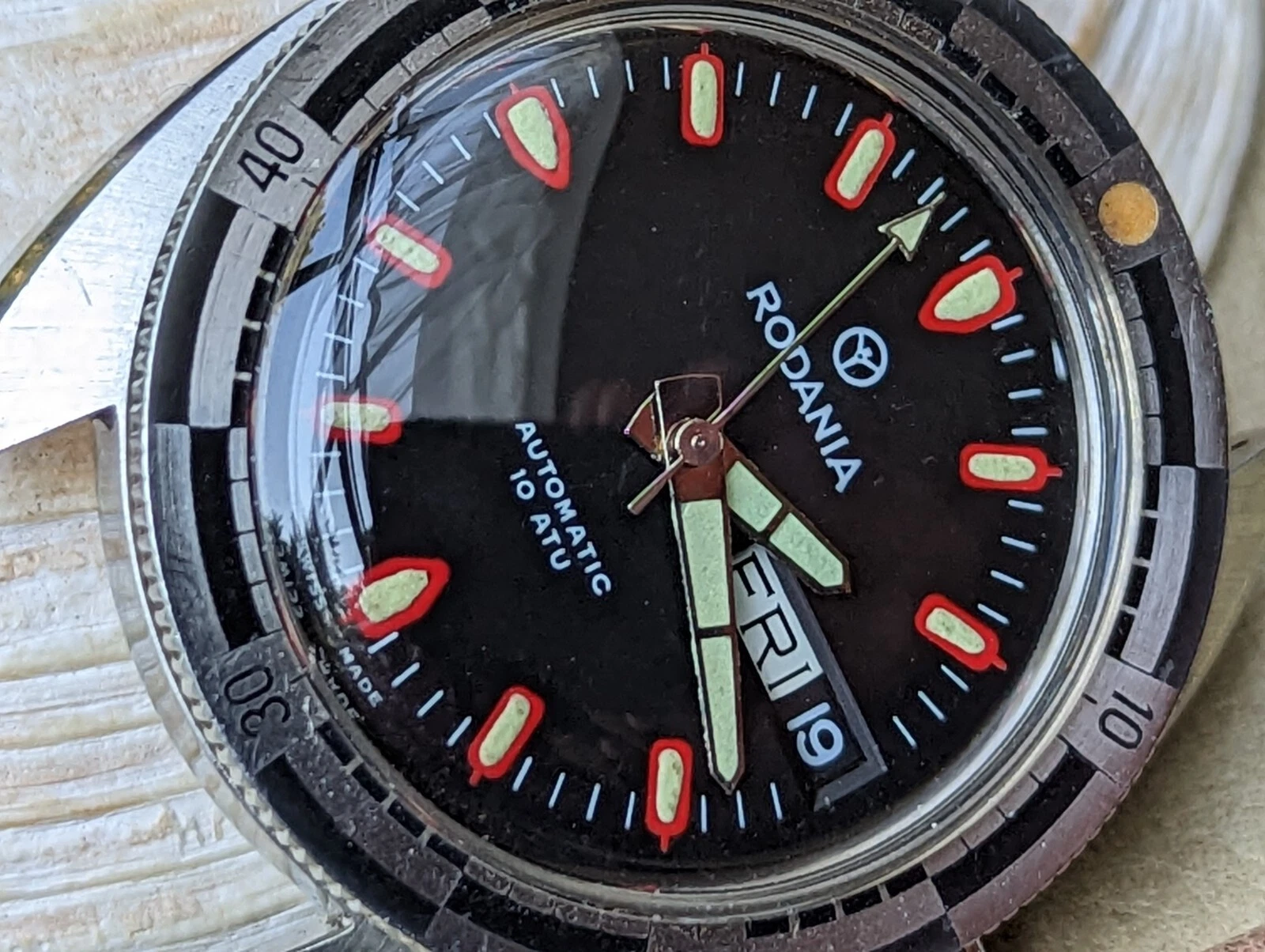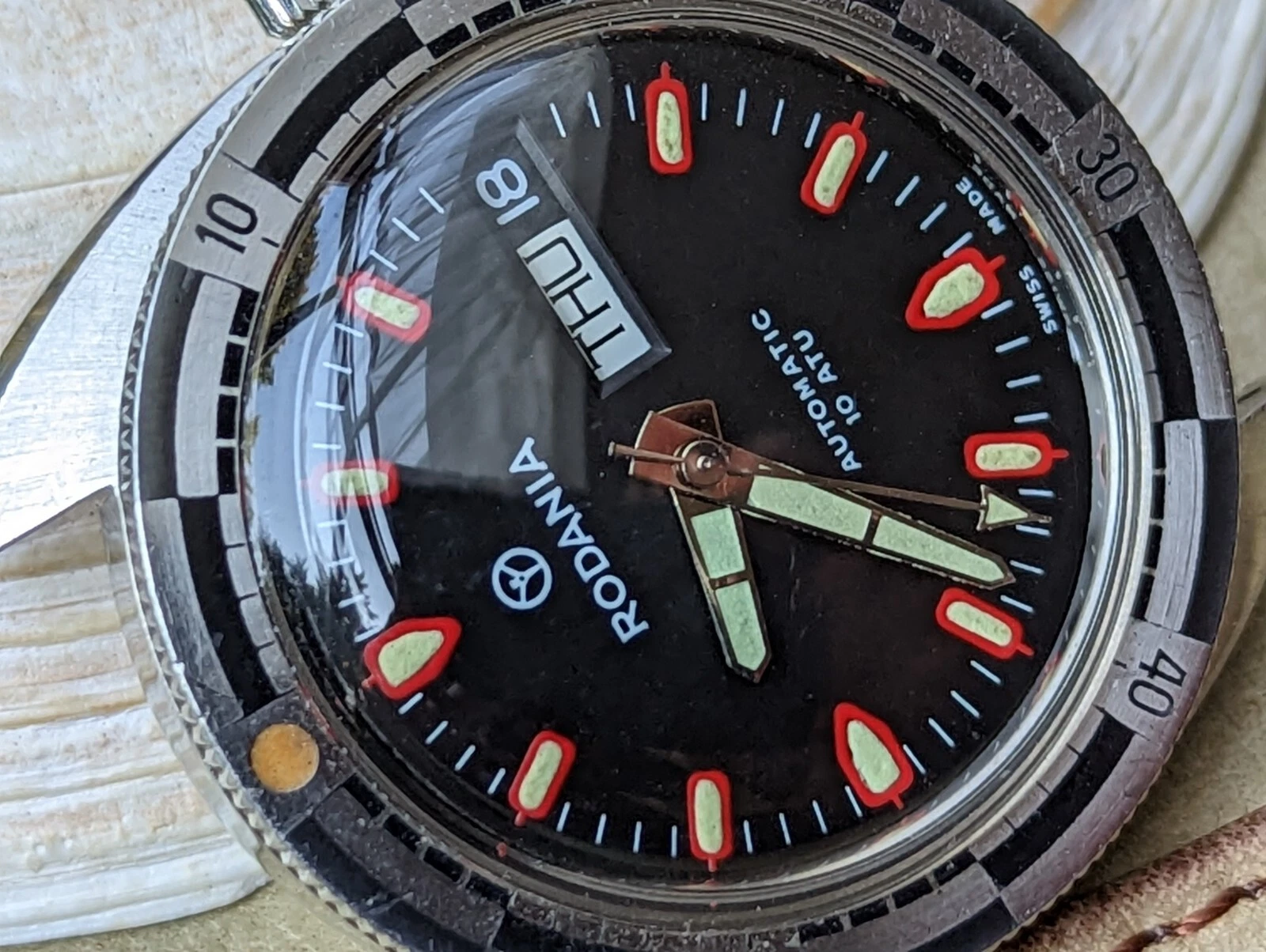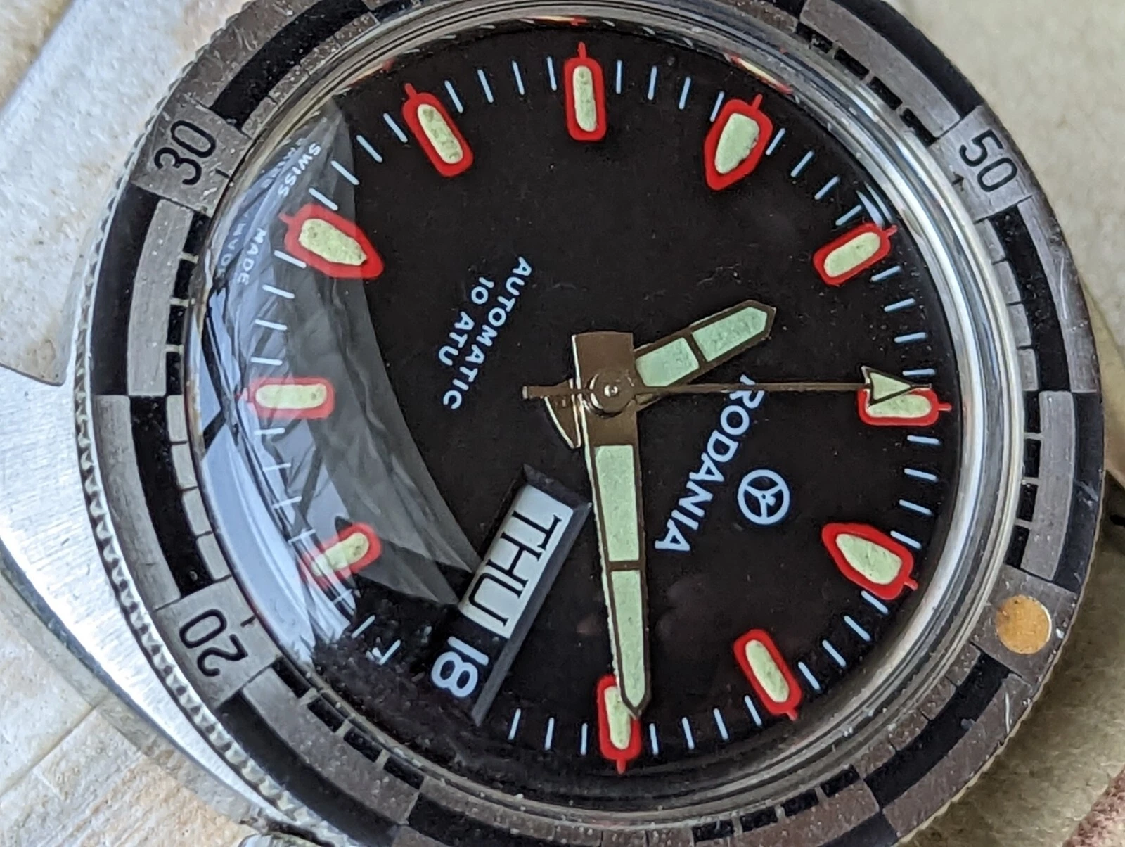 Vintage 1970's Rodania 10 ATM Day-Date Diver w/All SS Case,AS 2066 Mvmt,Serviced