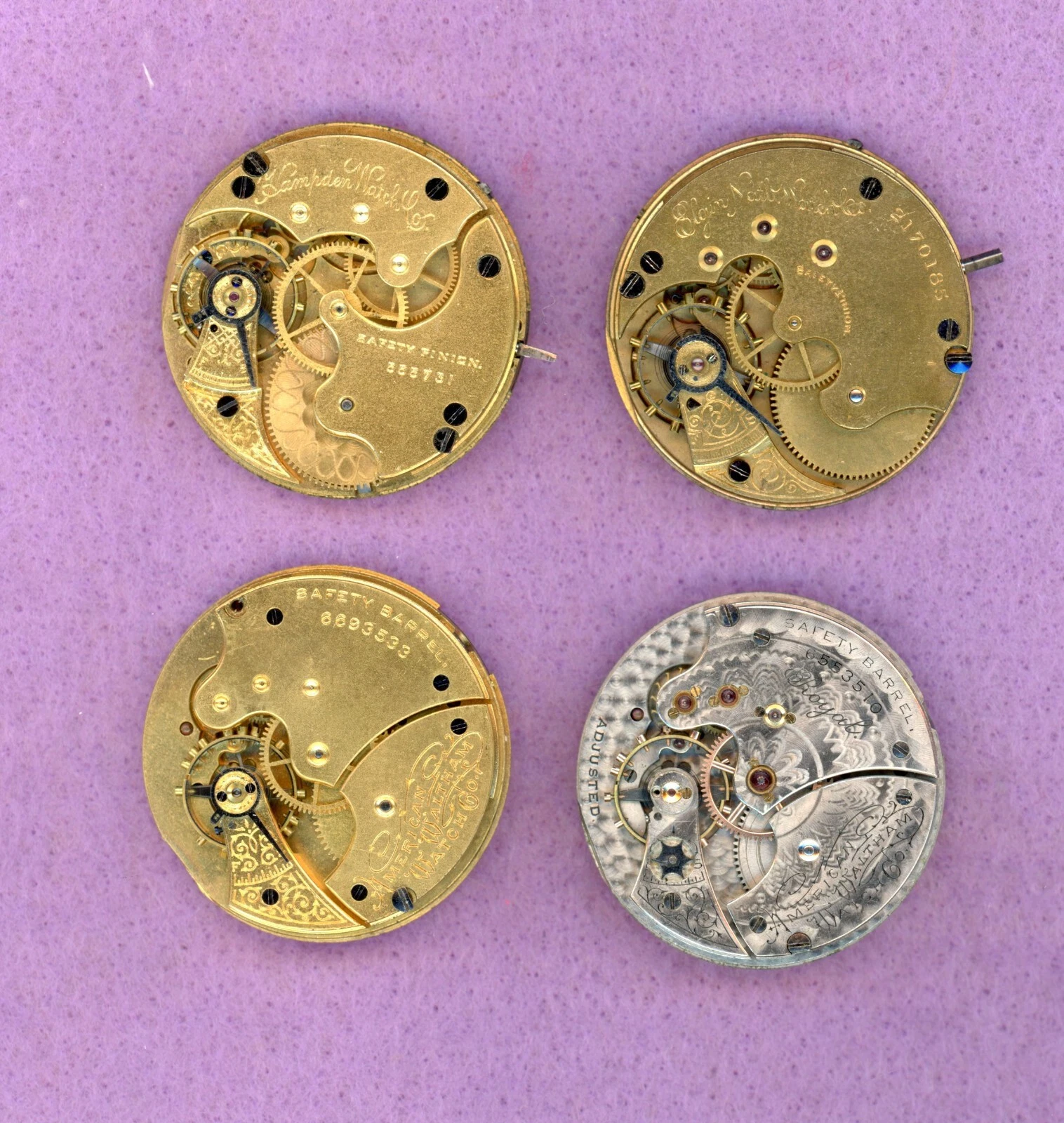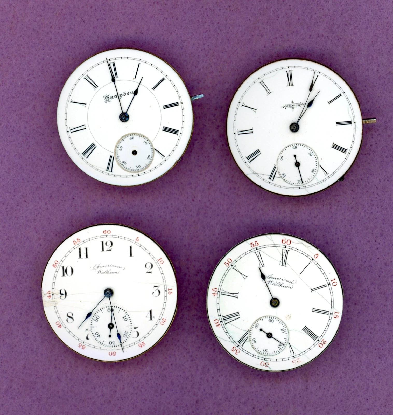 AMERICAN WALTHAM, ELGIN, HAMPDEN ~ POCKET WATCH WORKS ~ SET OF 4