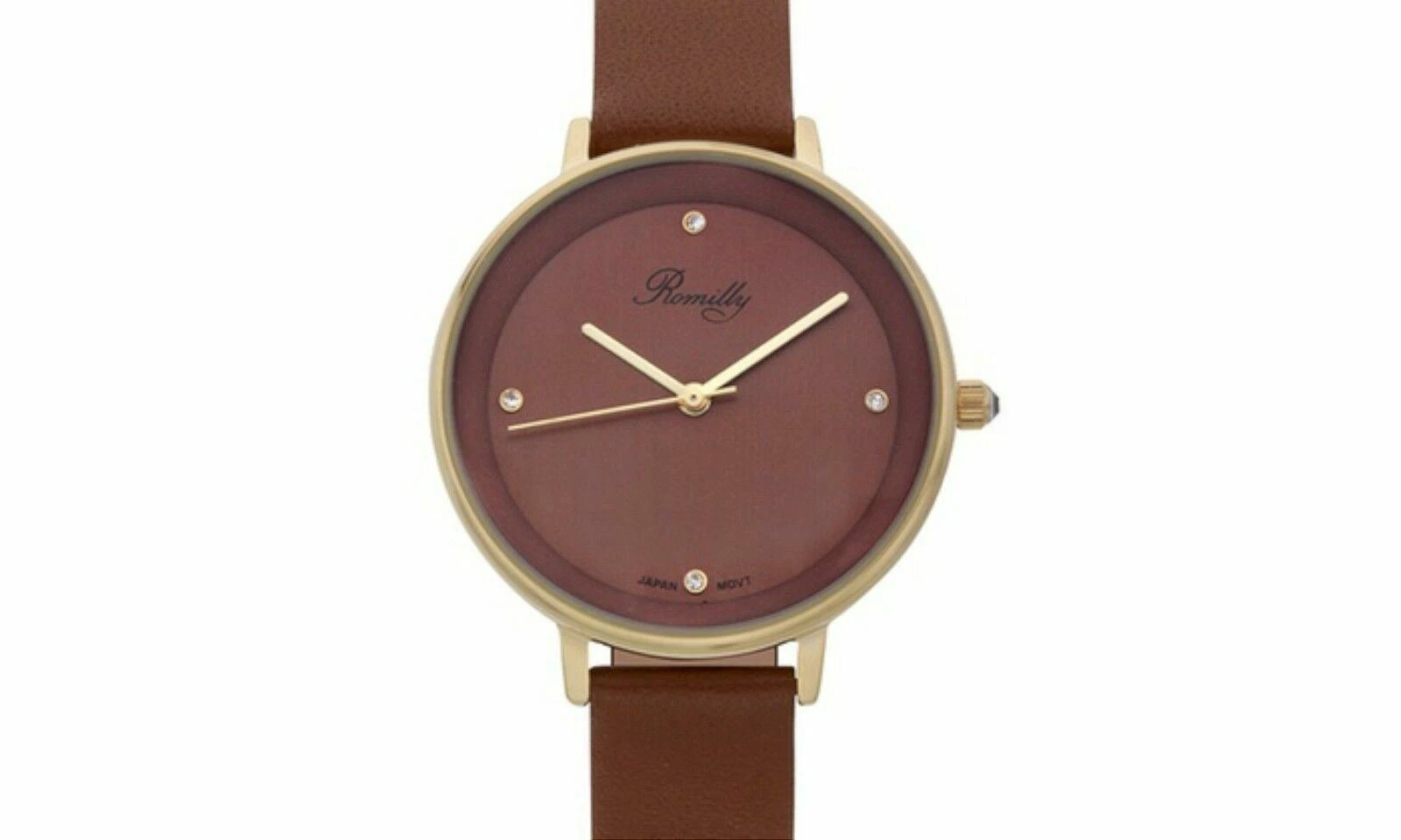 NEW Romilly 9861 Womens Royalty Collection Crystal Cognac Dial Leather Watch 30m