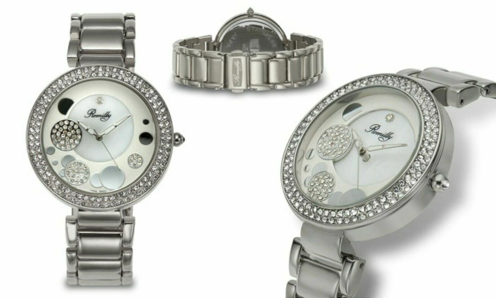 NEW Romilly 1430 Women's Sophia Collection Diamond Bubble MOP Dial Silver Watch