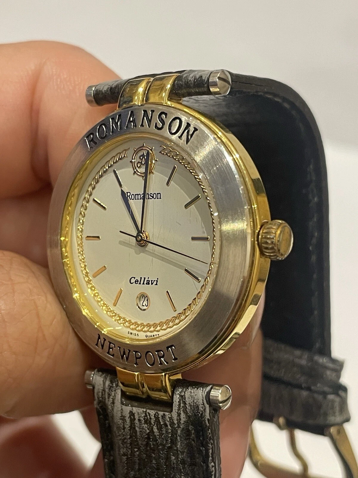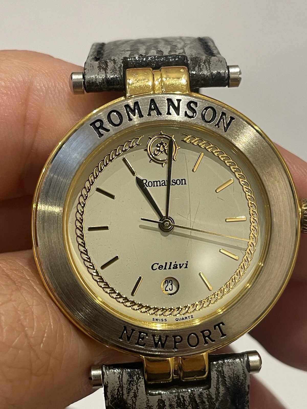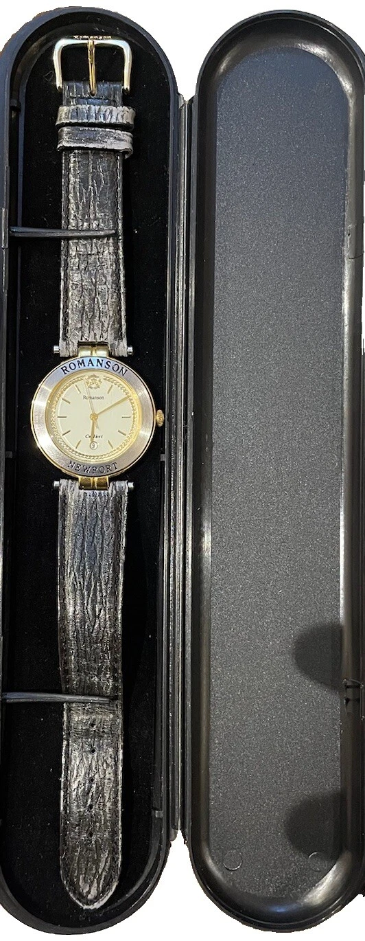 ROMANSON Newport Rare Swiss Watch. 22k Gold Plated Date. Micheal Herbelin Design