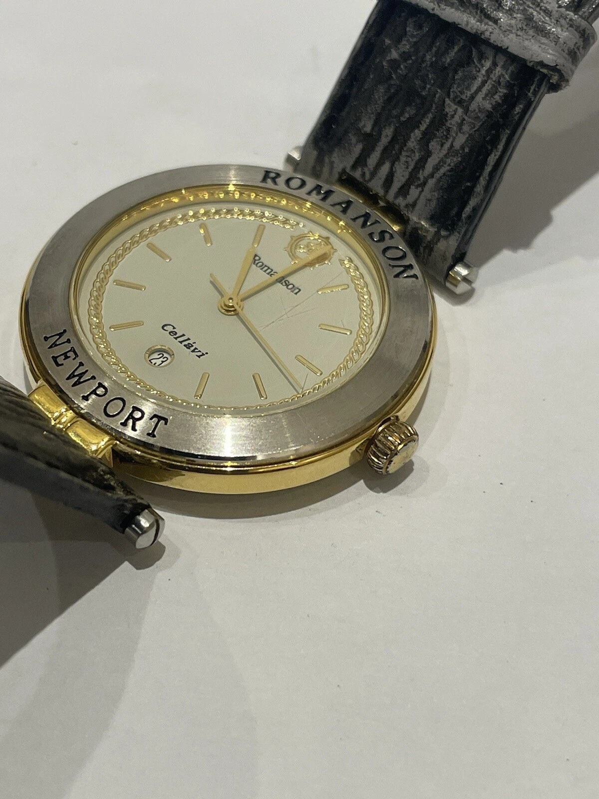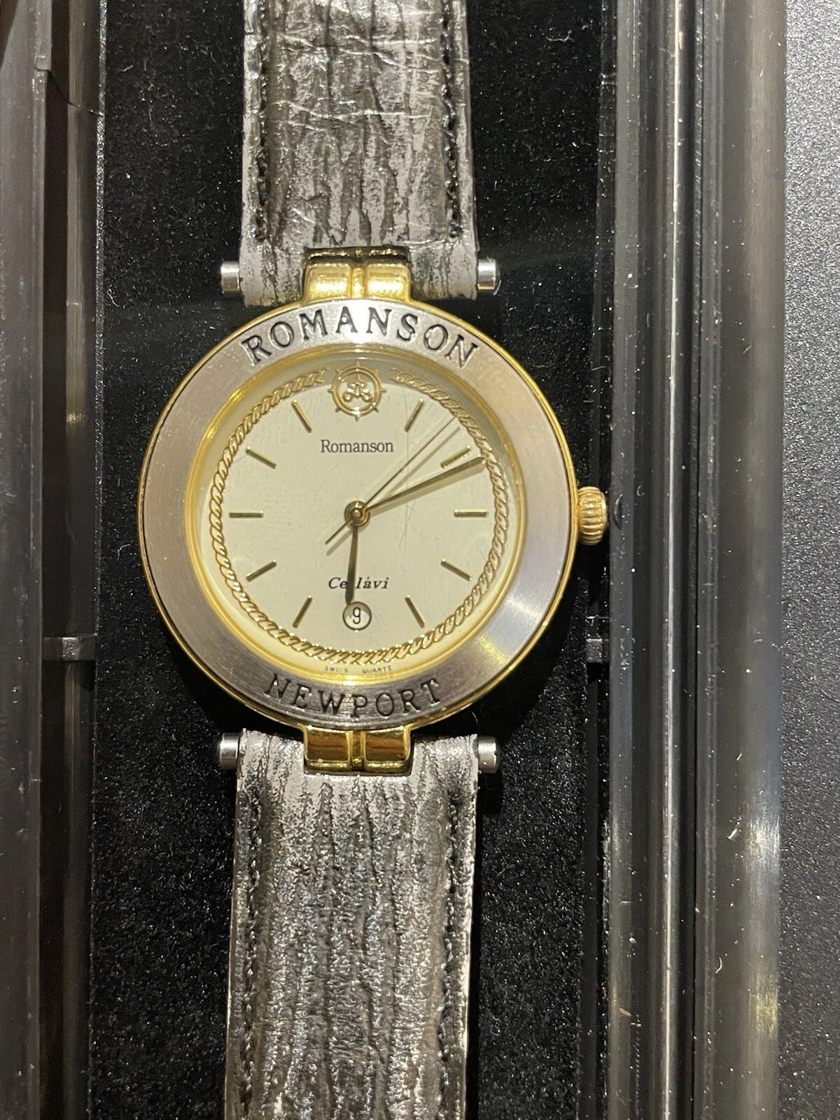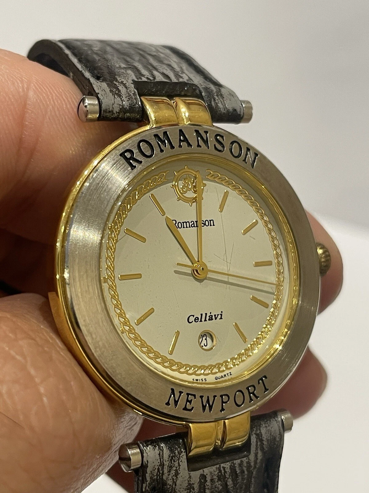 ROMANSON Newport Rare Swiss Watch. 22k Gold Plated Date. Micheal Herbelin Design