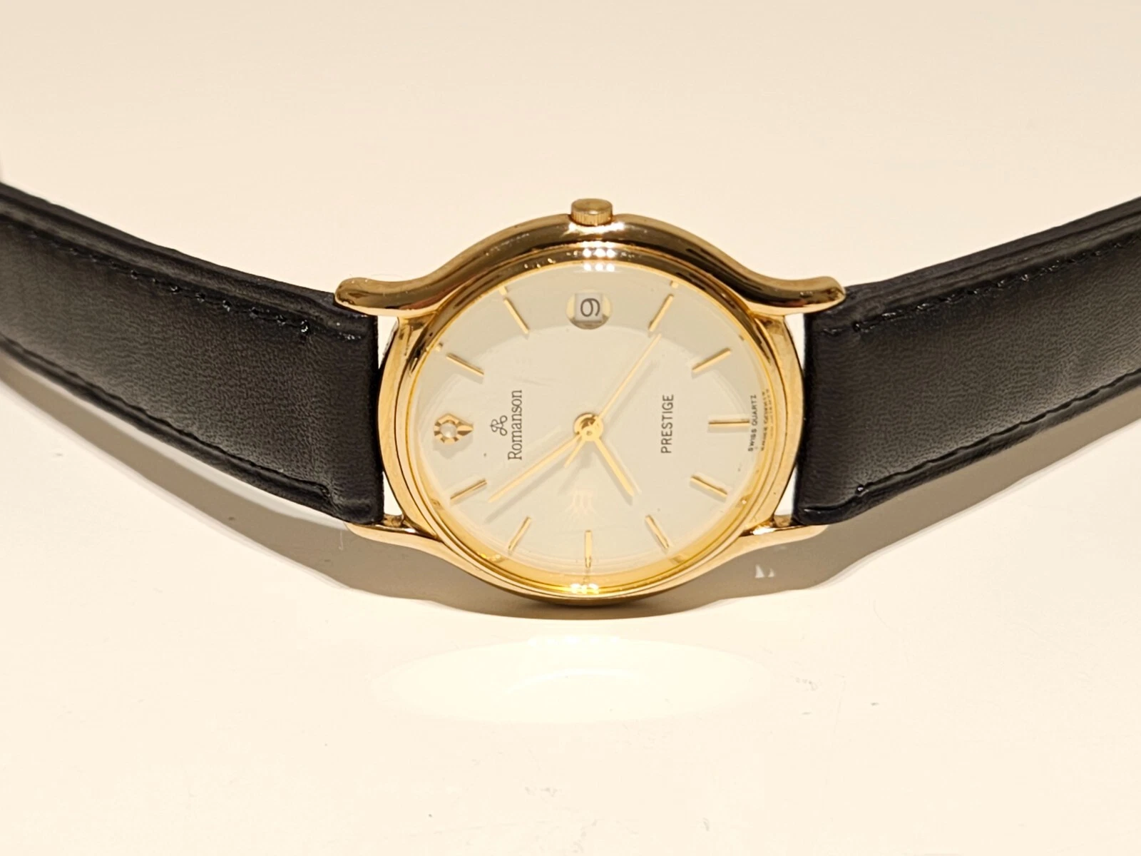 RETRO LUXURY 24K GOLD PLATED MEN'S LADIES SWISS QUARTZ WATCH "ROMANSON" PRESTIGE