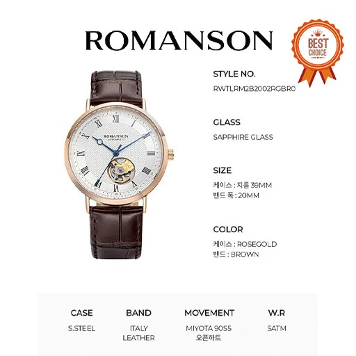 J.ESTINA [ROMANSON] Cairo Classic Open Heart Leather Watch (RWTLRM2B2002RGBR0)