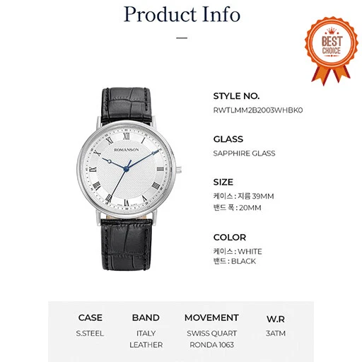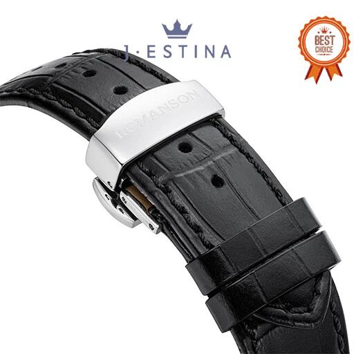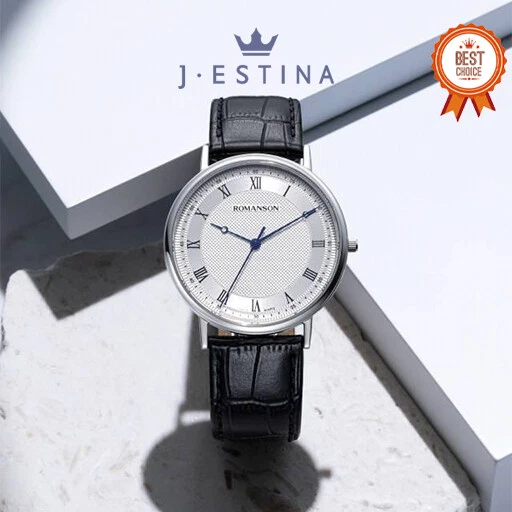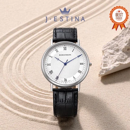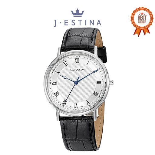 [J.ESTINA] [ROMANSON] Kyros Classic Slim Leather wristwatch (RWTLMM2B2003WHBK0)