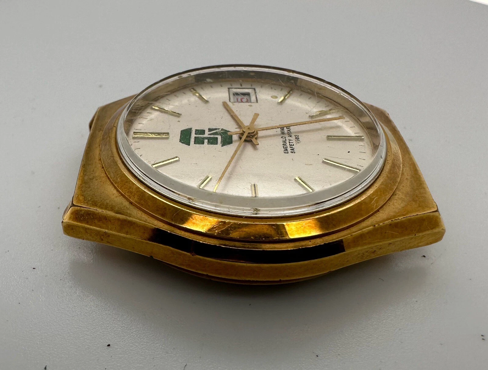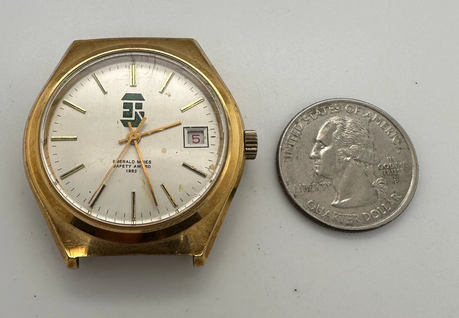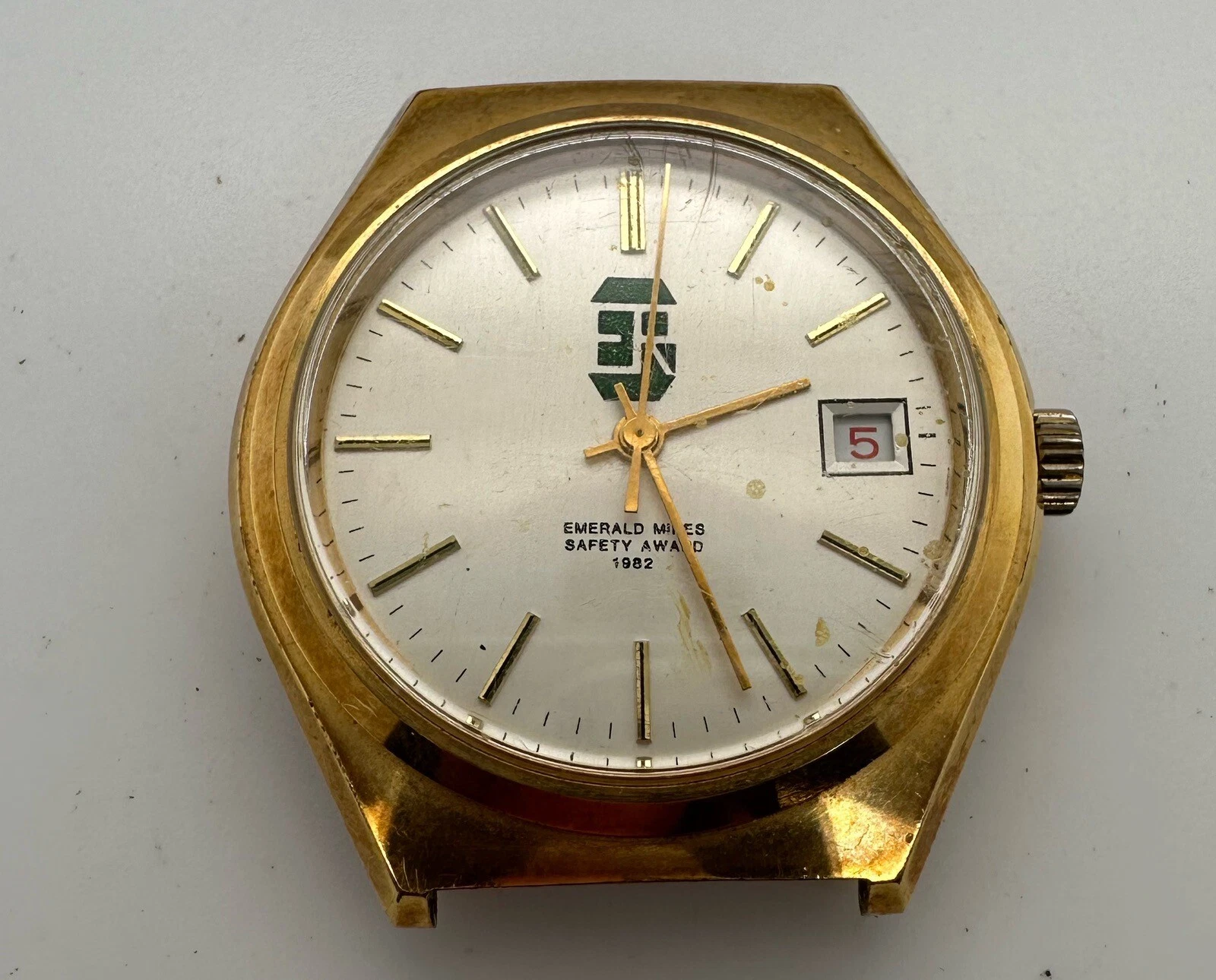 Men’s Vintage 25j Swiss Auto RondaMatic Watch “Emerald Mines Safety Award” 1982