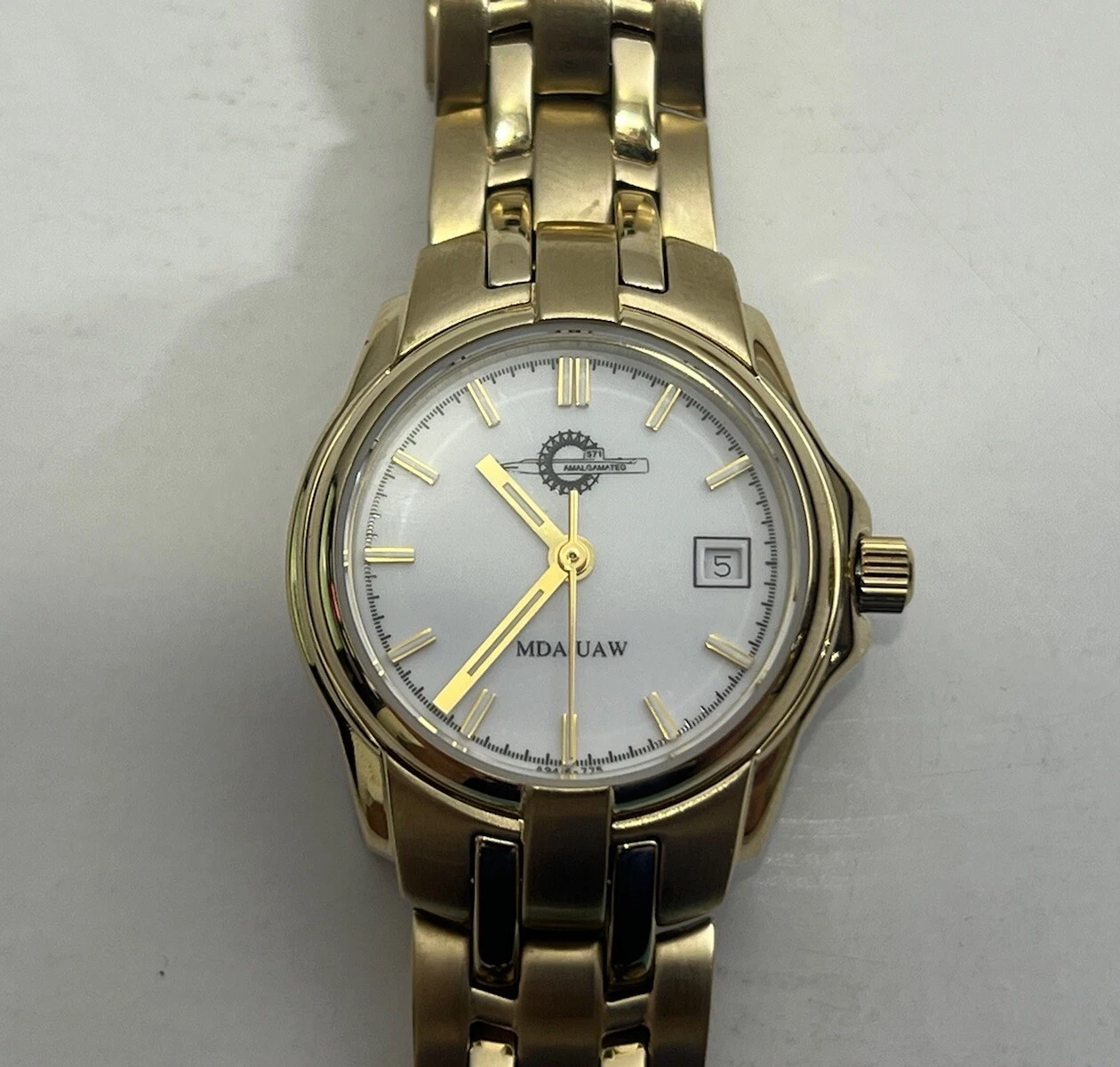 571 amalgamated MDA-UAW Date Gold Tone Ladies Quartz Ronda Movement Watch