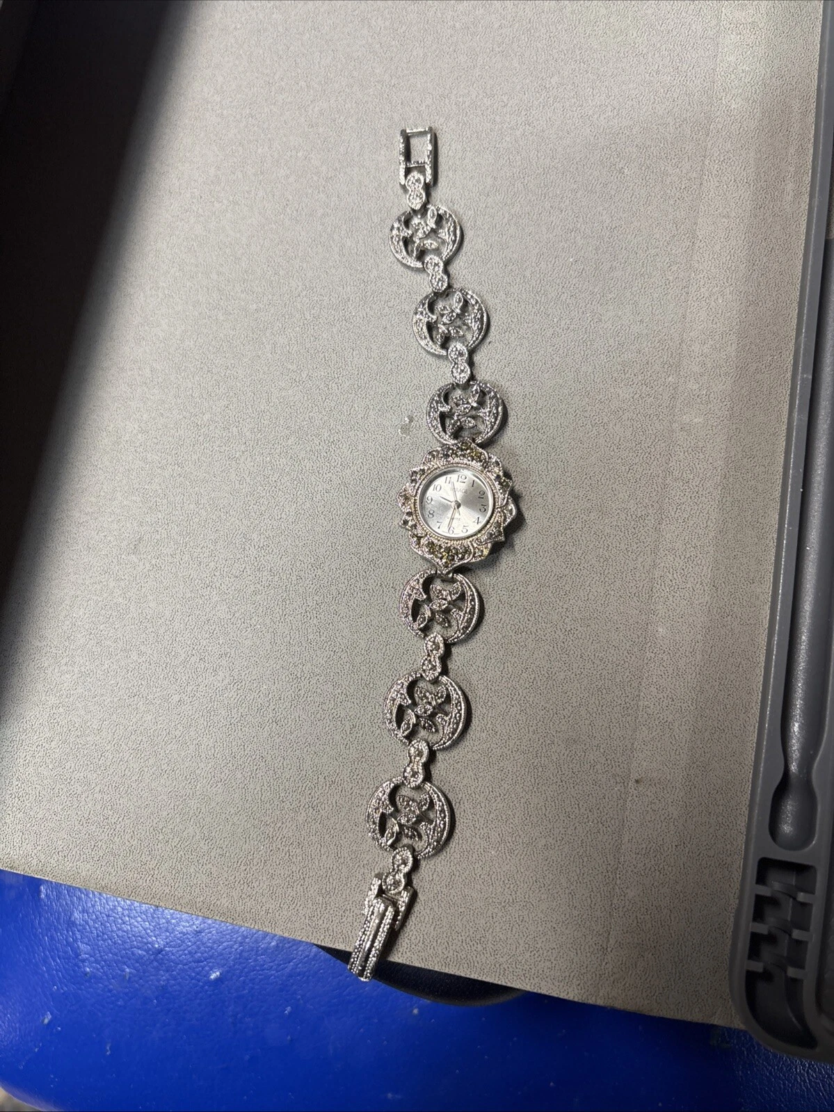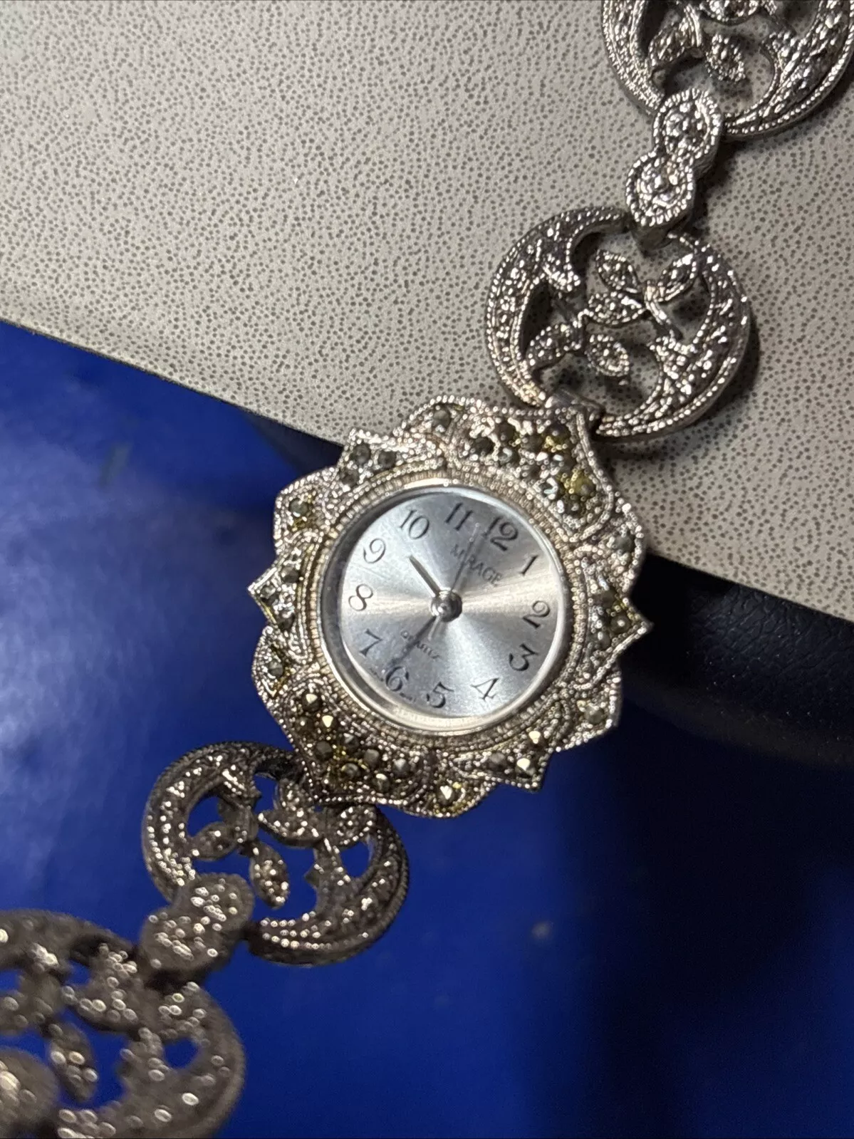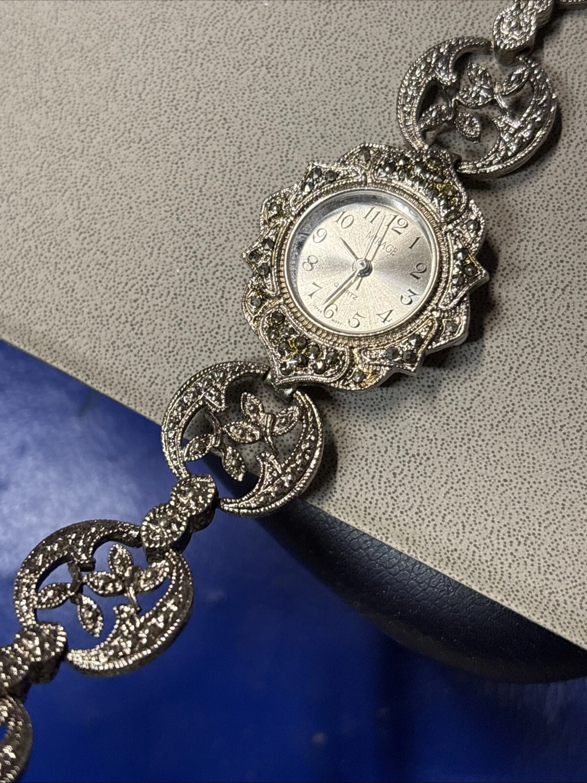 Vintage Ronica Marcasite Watch Women 24mm Silver Tone Ornate