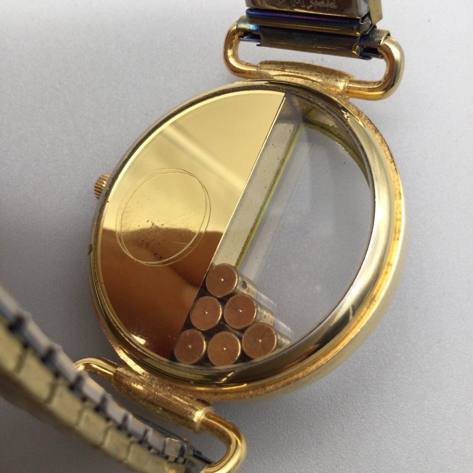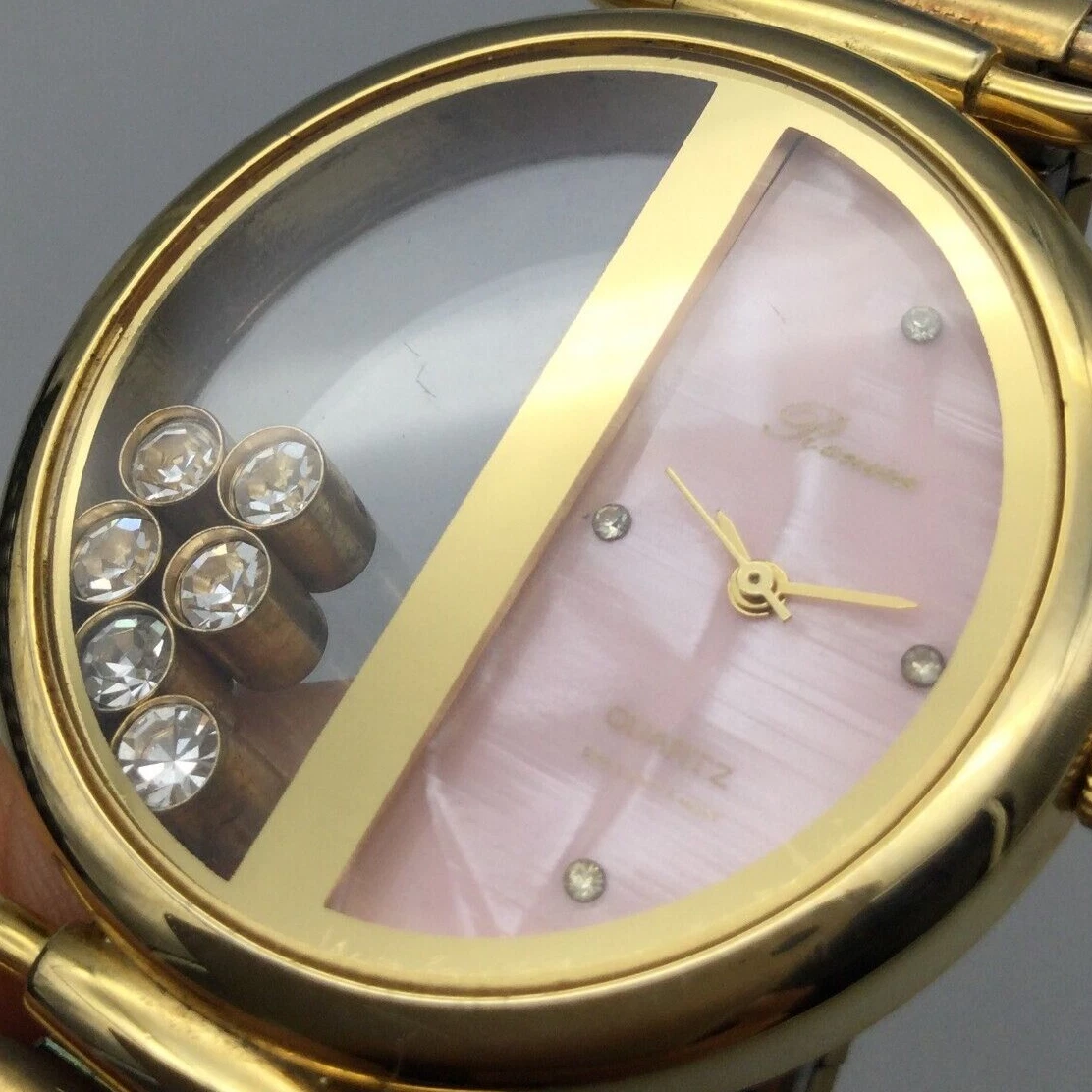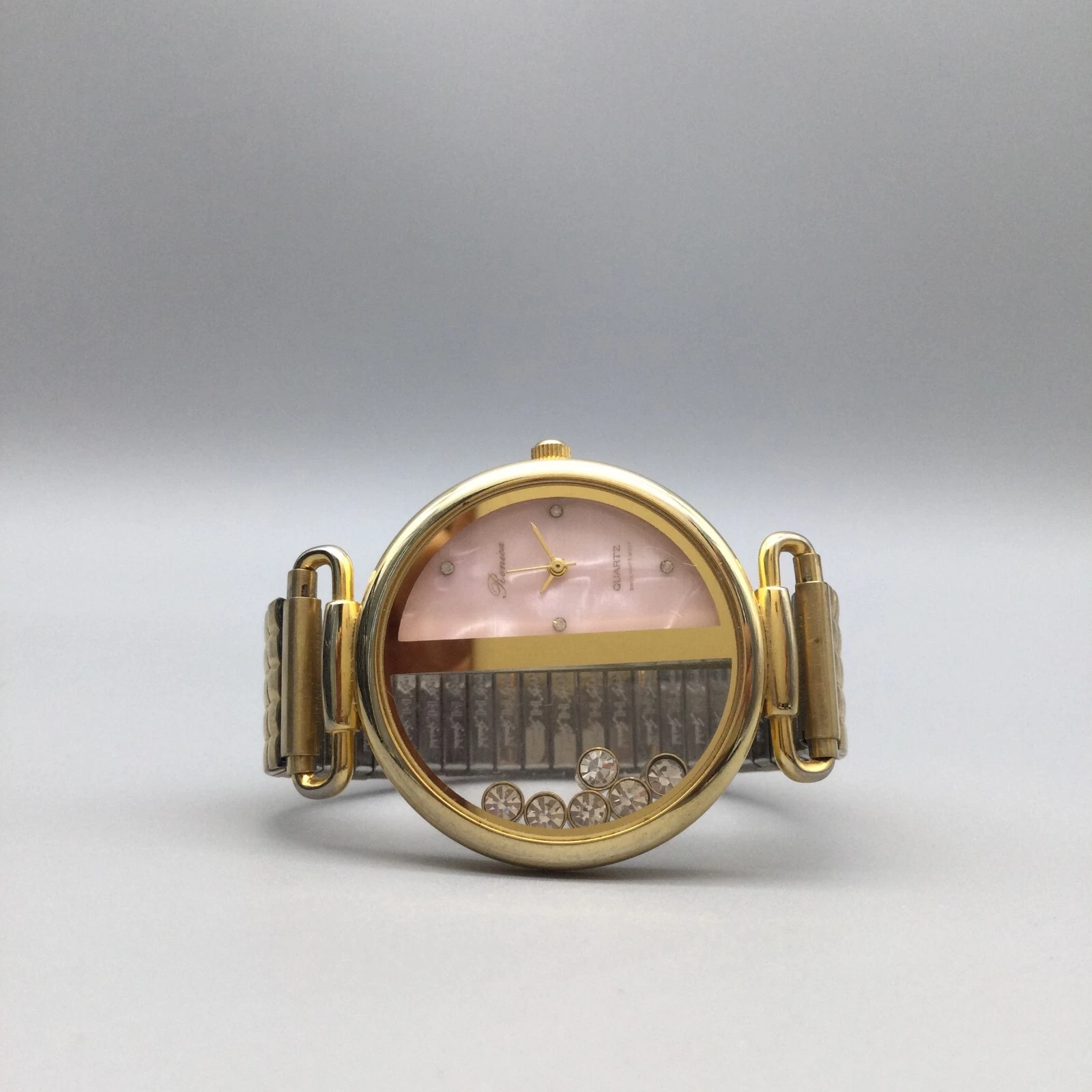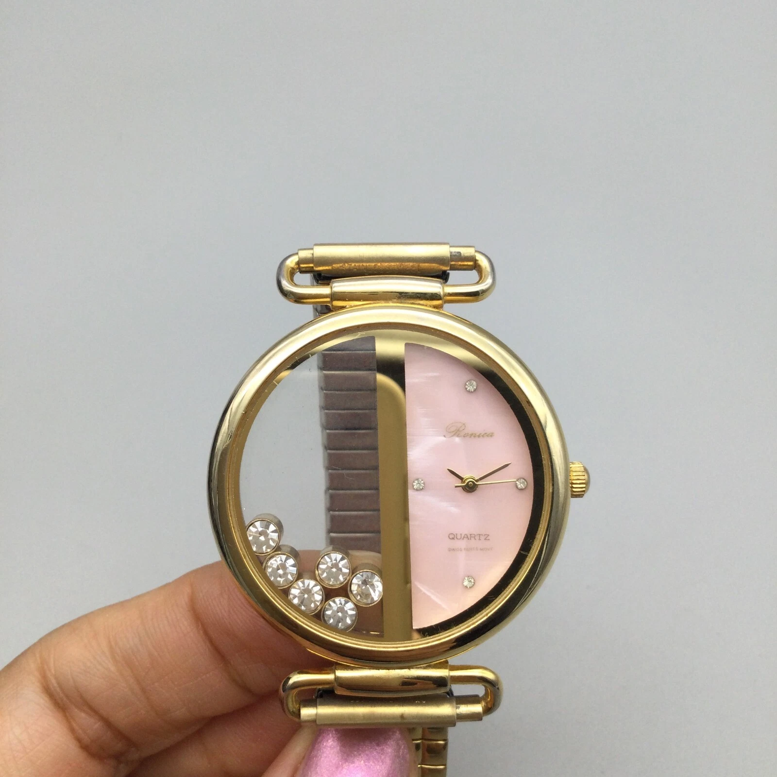 Vtg Ronica Watch Women Gold Tone MOP Floating Crystals Half Dial New Battery