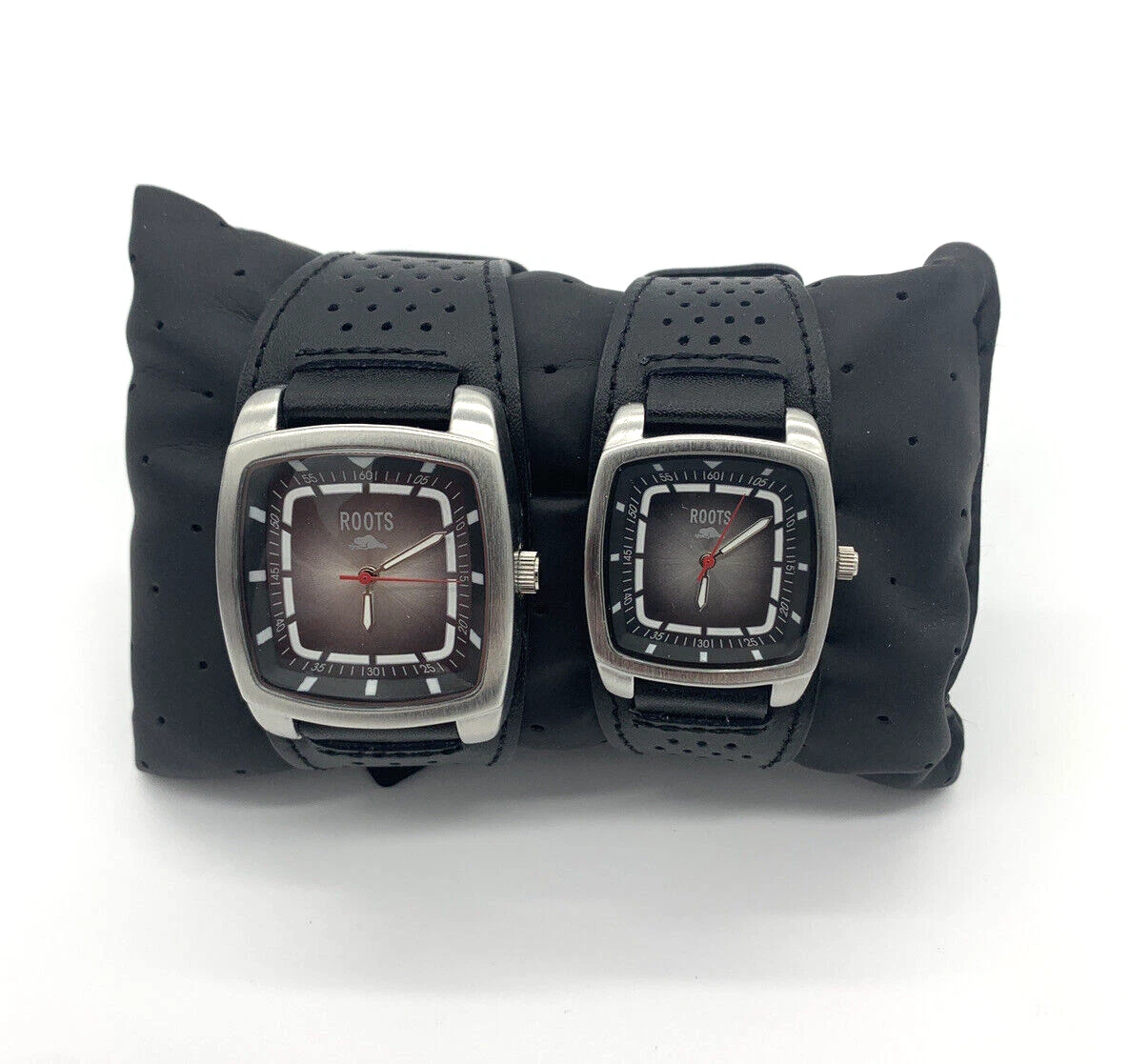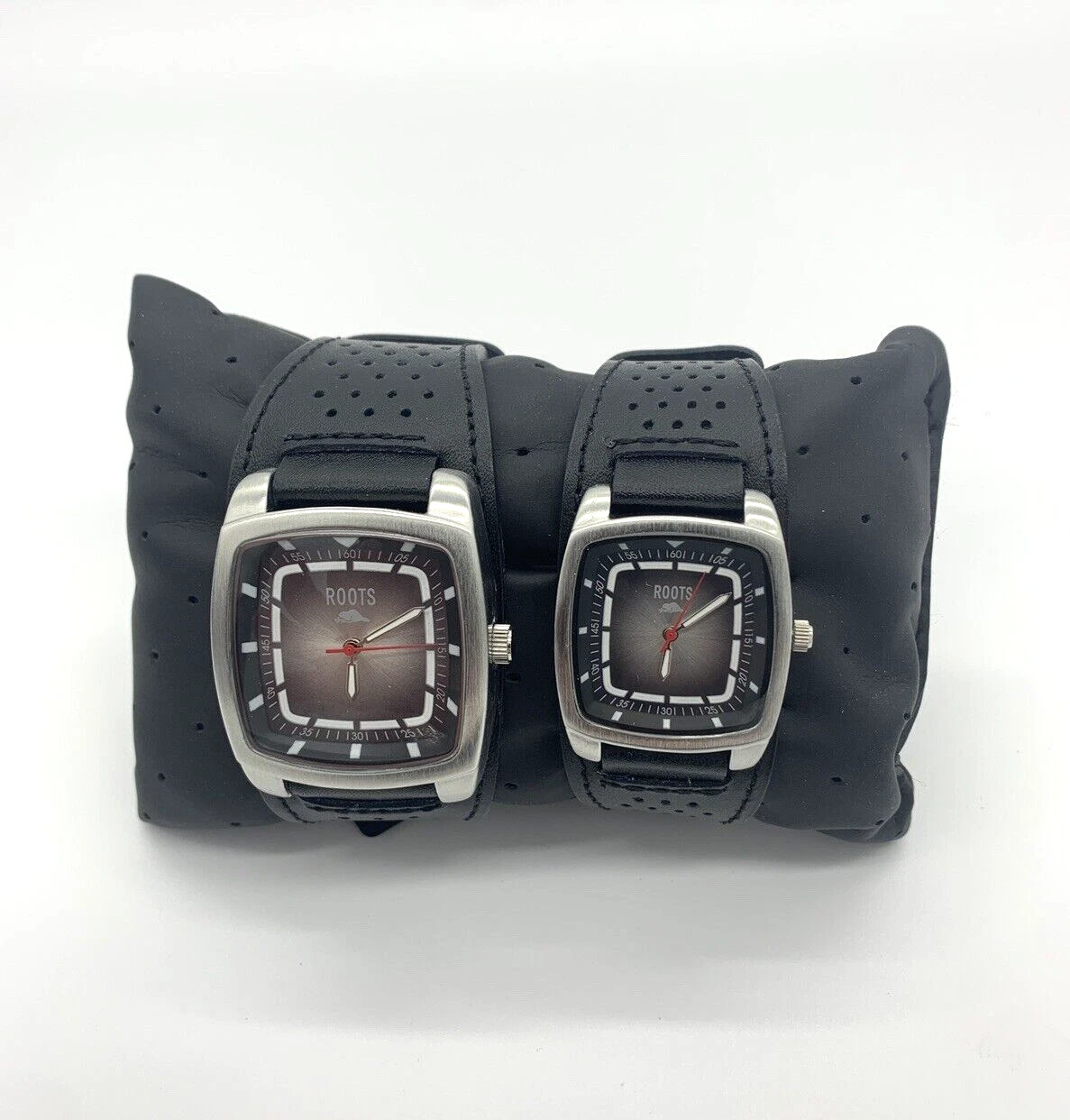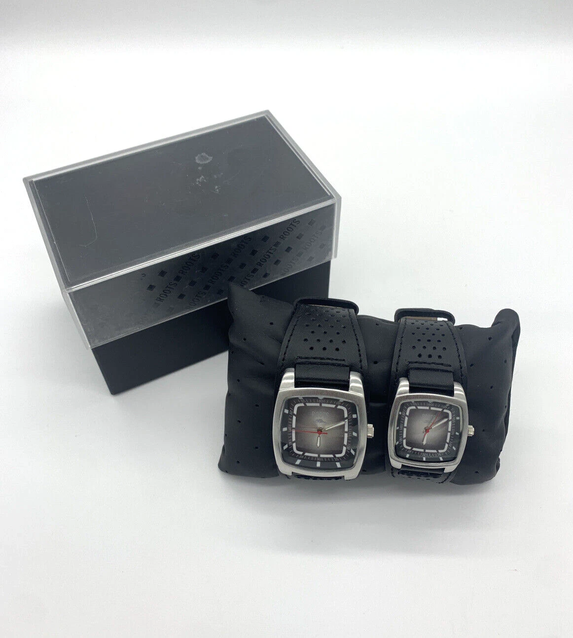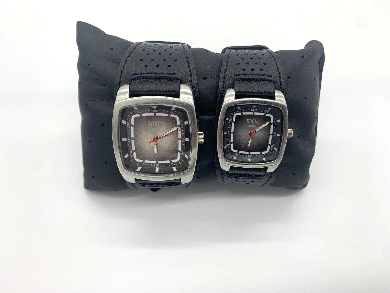 Pair of ROOTS WATCHES Lot of 2 His & Hers Leather Strap with CASE Leather pillow