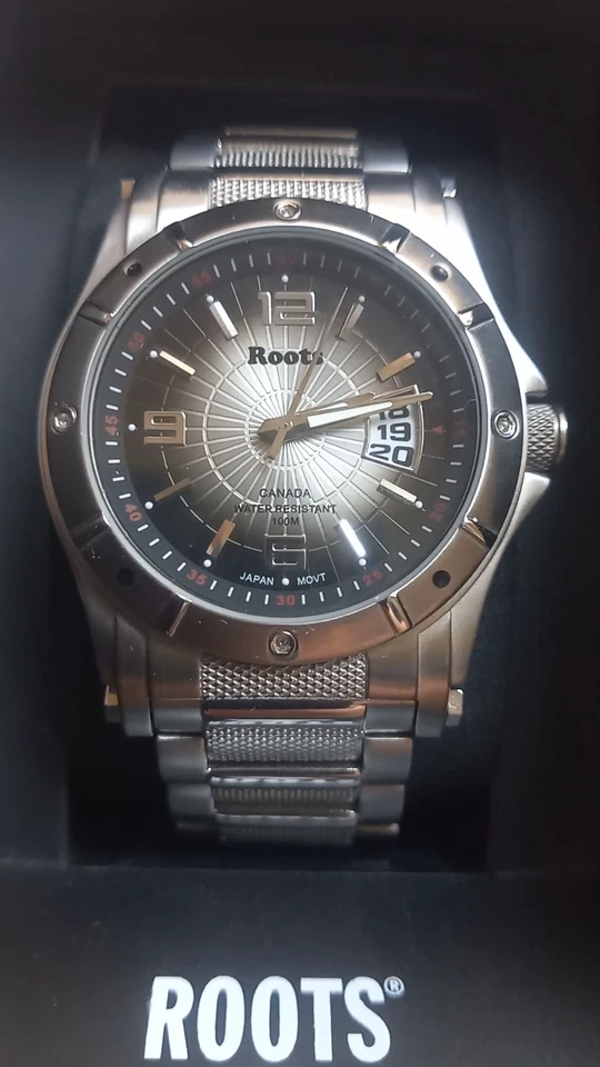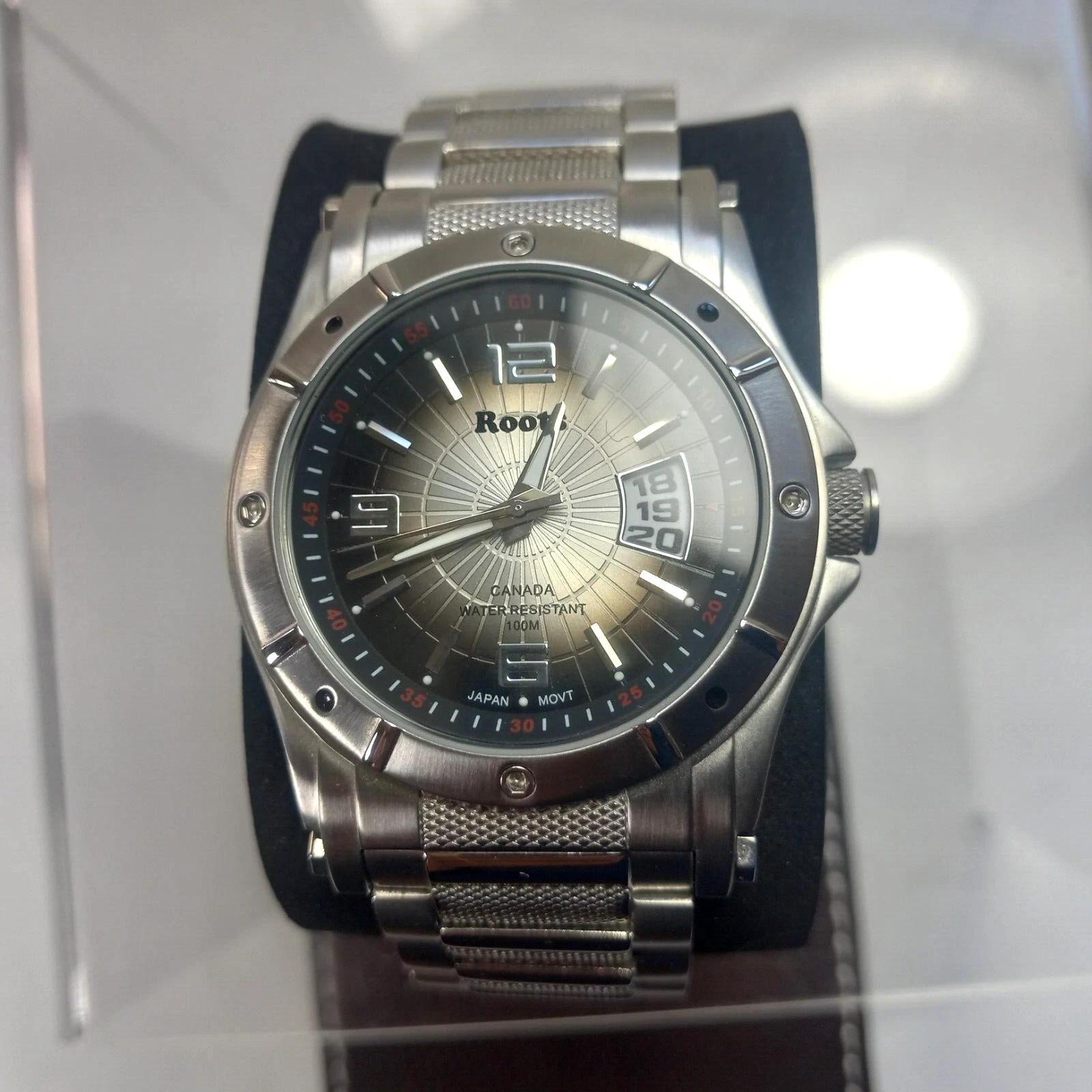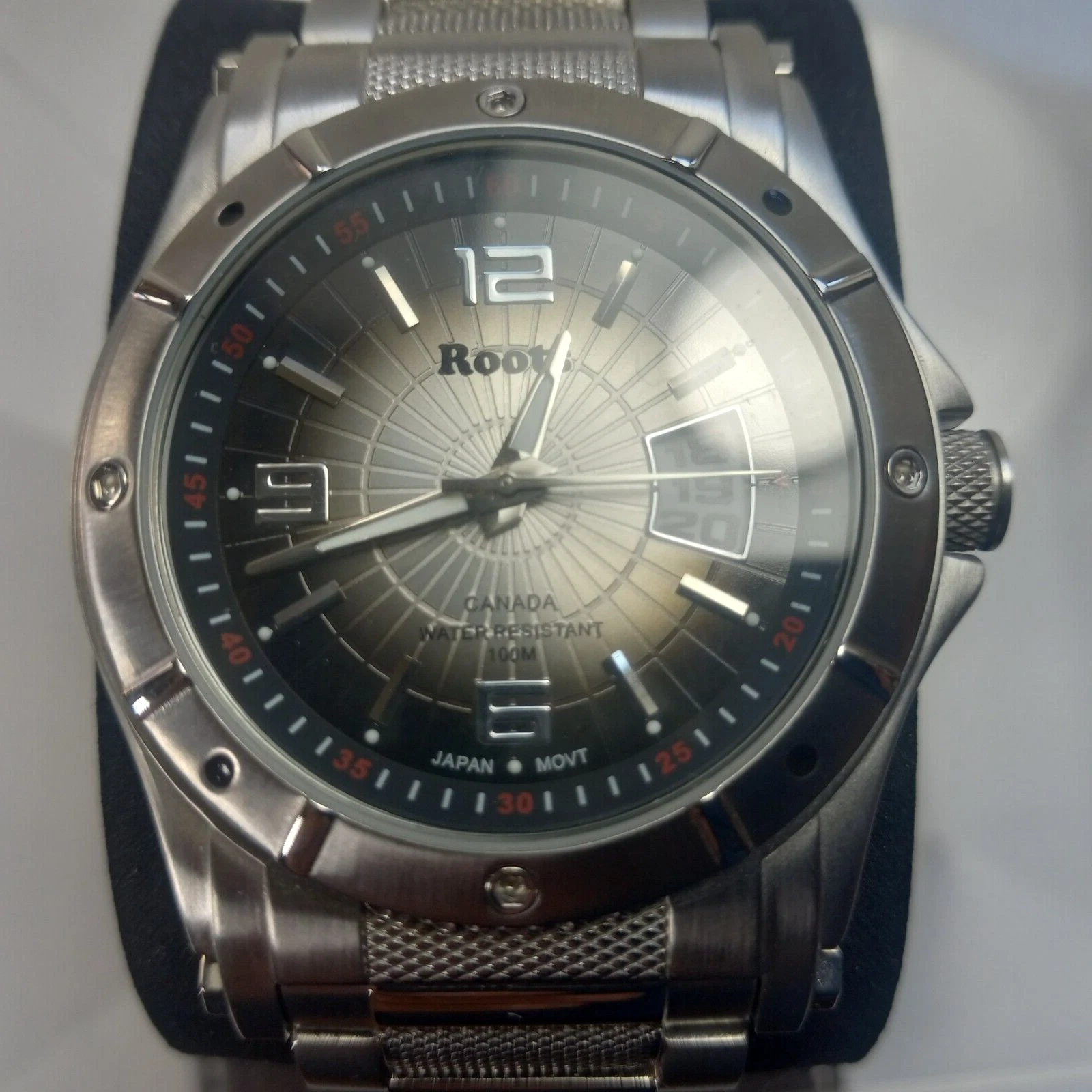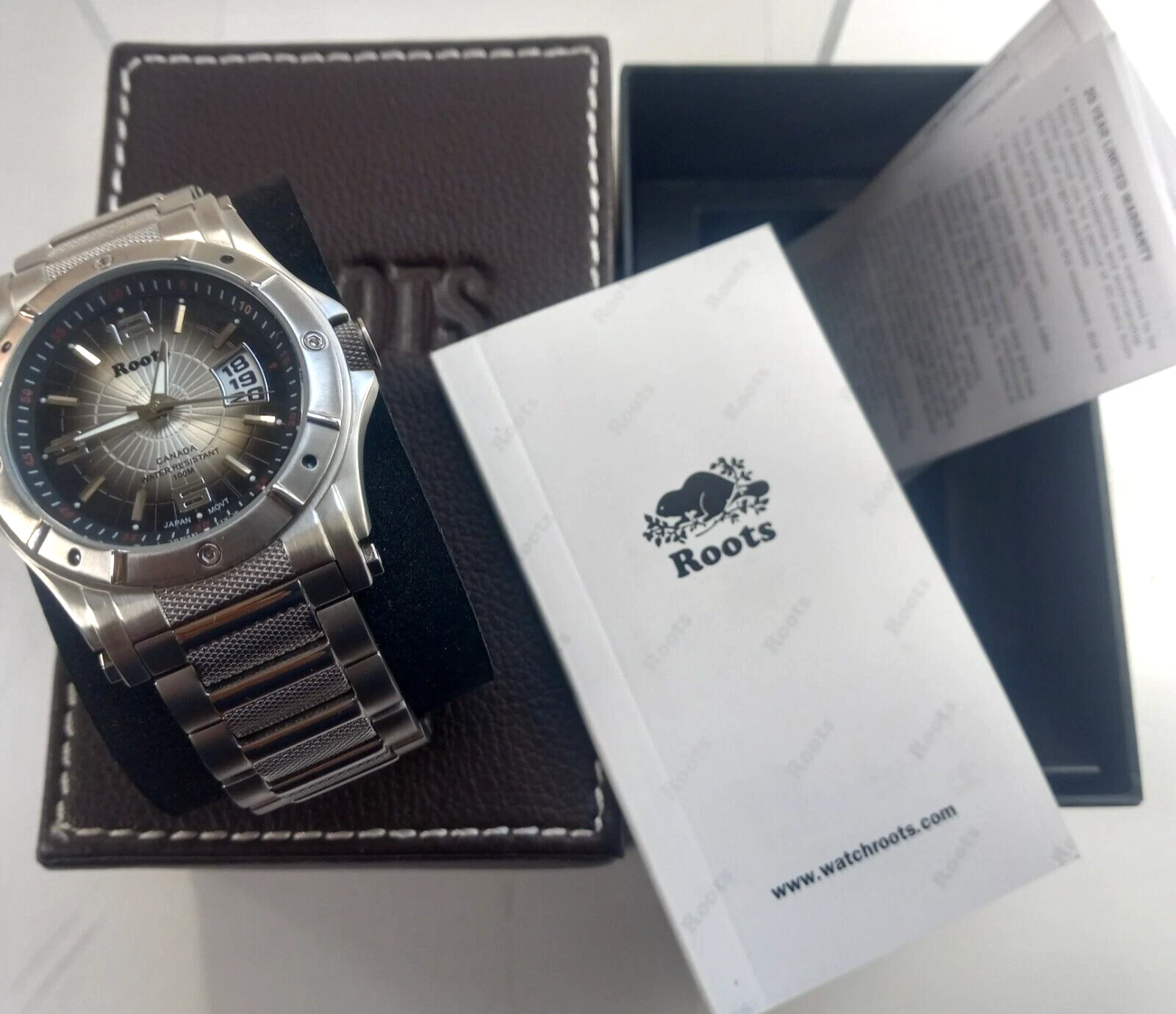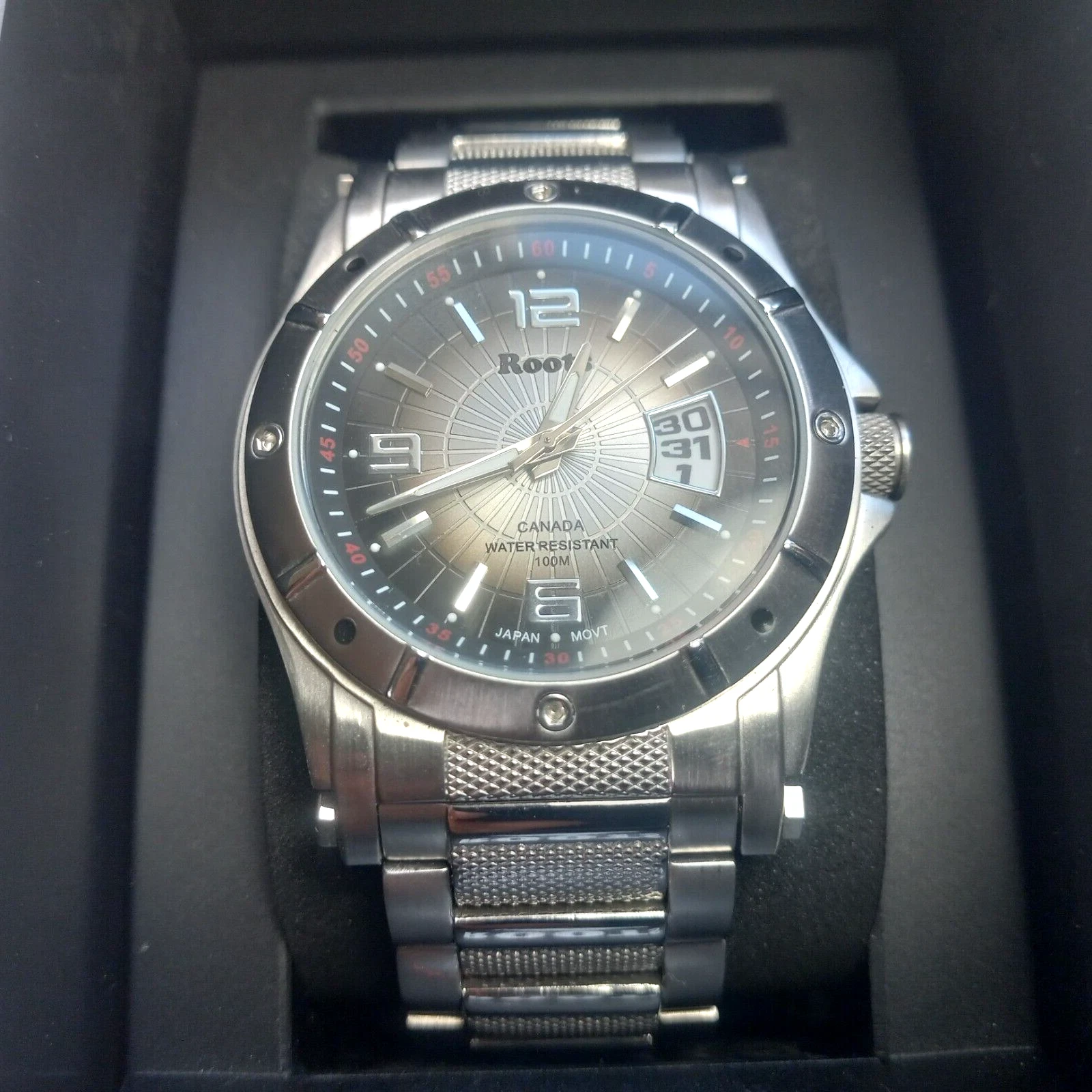 Roots Watch Stainless Steel Mens New In Box Manual Canada Water Resistant Gaspe