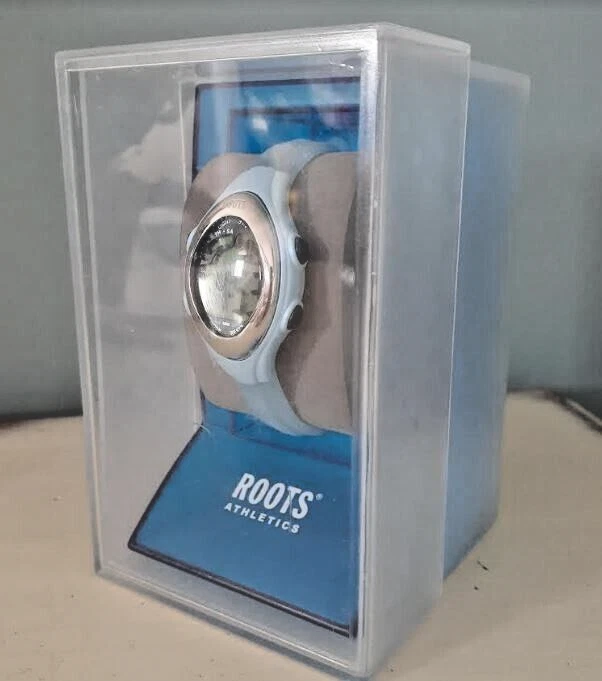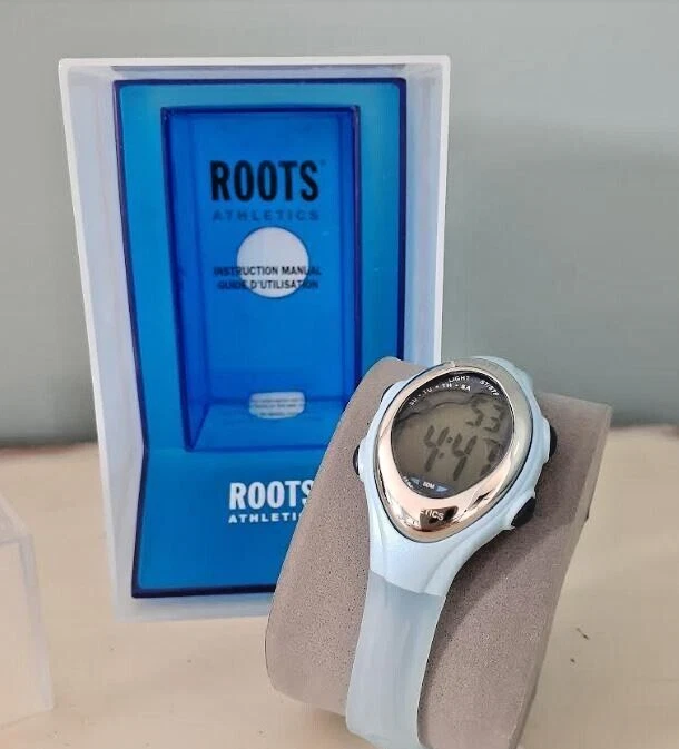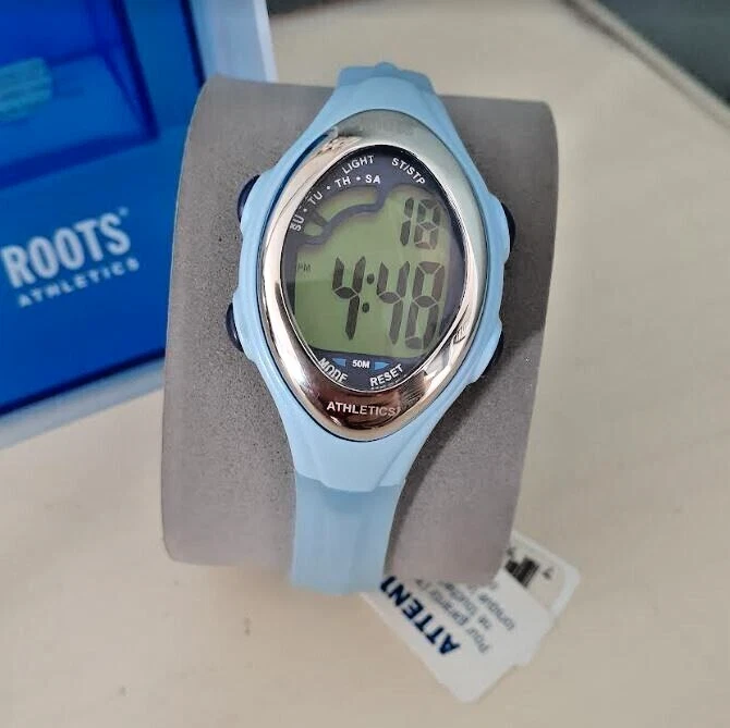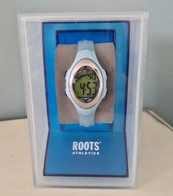 Roots Athletics Light Blue Zone Digital Watch rubber strap - new battery w tags