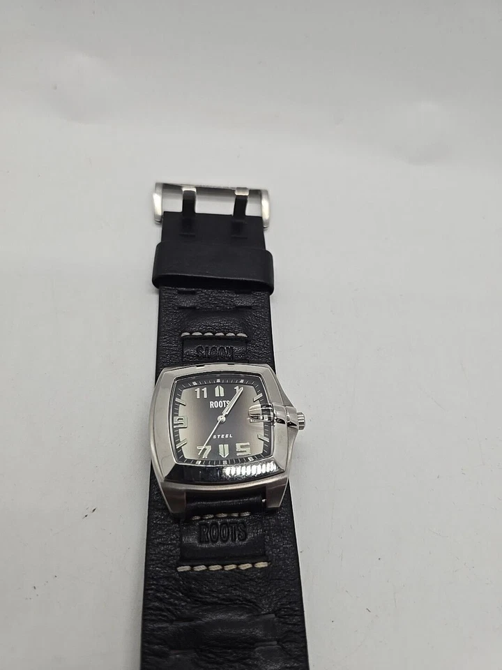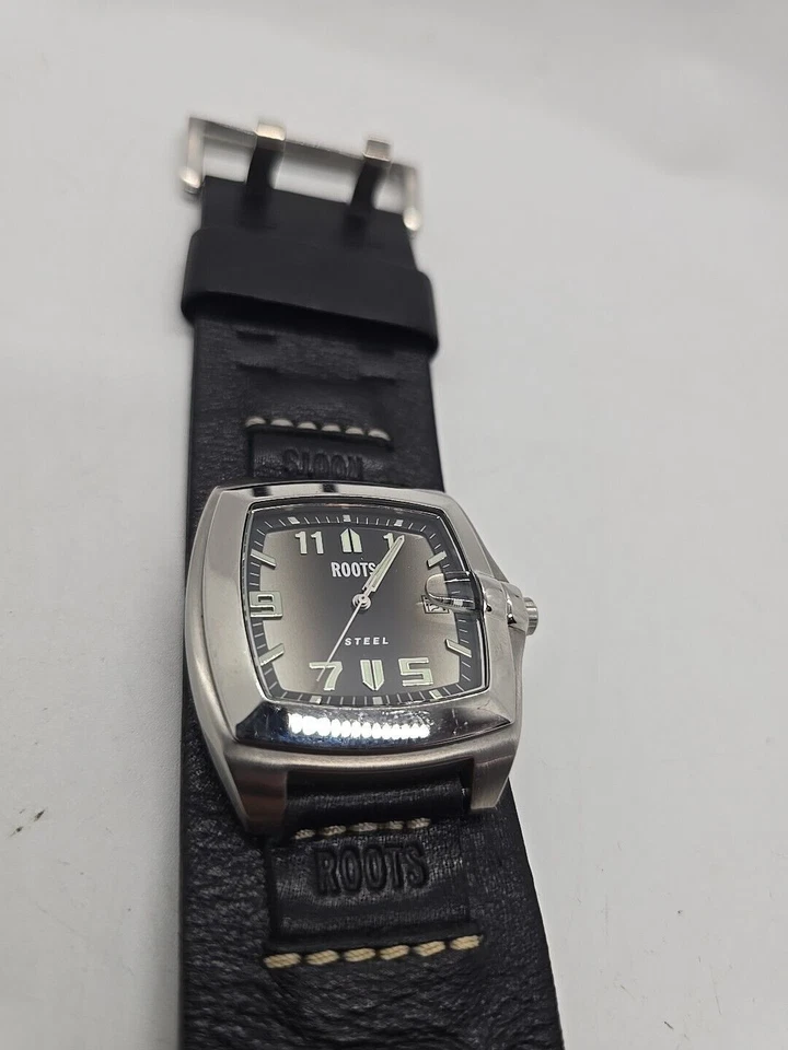 Roots Genuine Oem Leather Steinless Steel Dial Date Wrist Watch