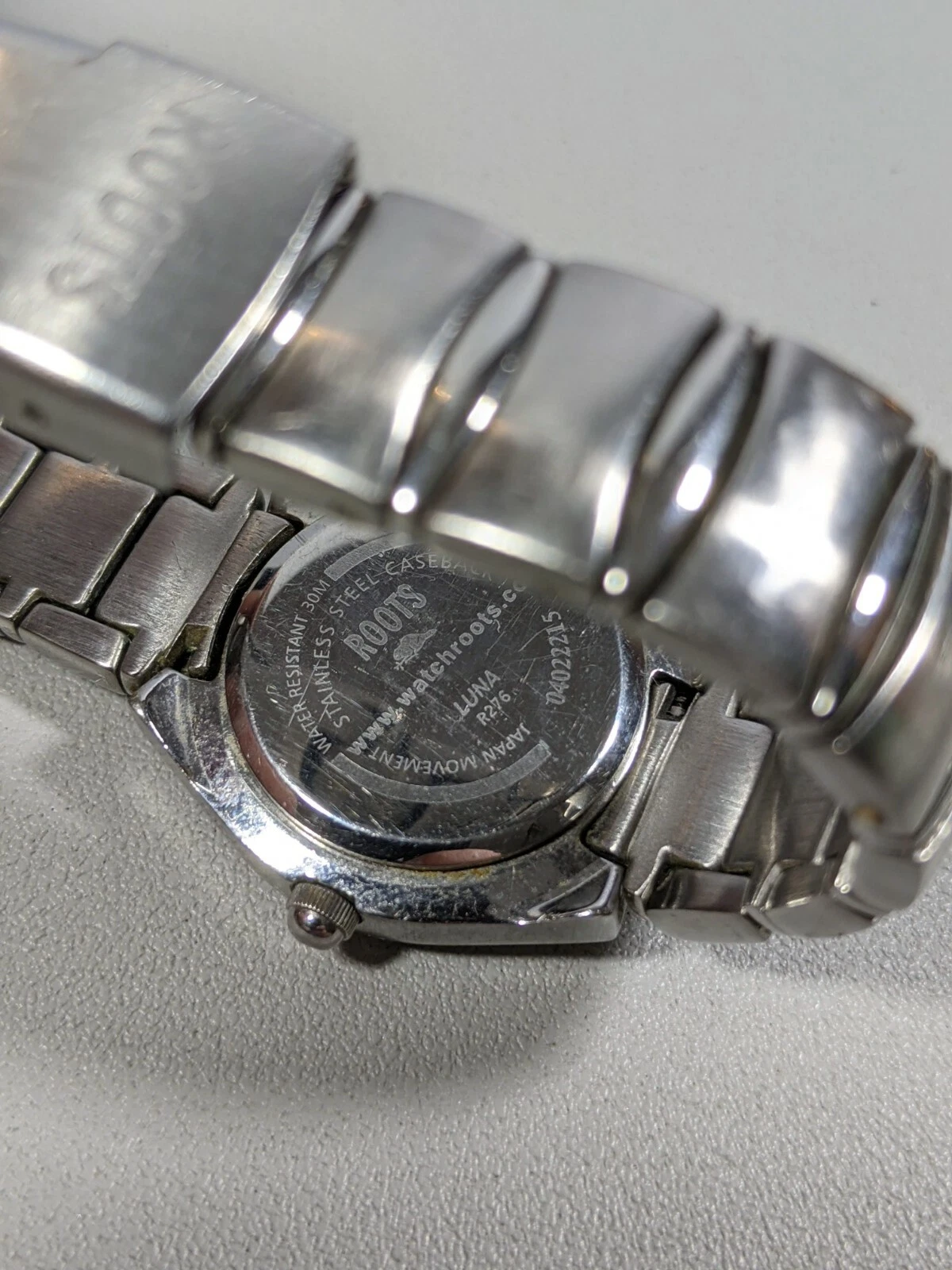 Roots Silver Tone Case Stainless Steel band Watch 6 Inch