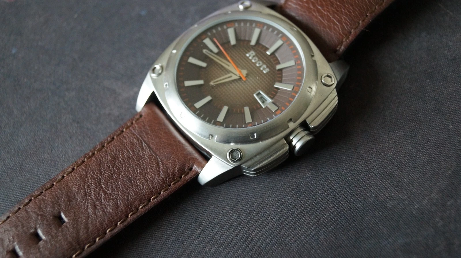 ROOTS Watch Wild Creek R889 Bronze Tank 46mm x43mm nickel allergy free quartz uk