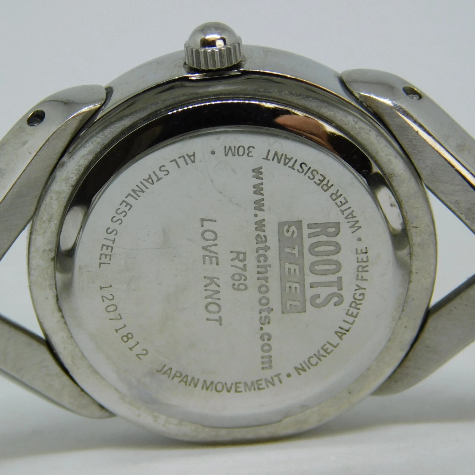 ROOTS Steel R769 Love Knot Quartz Analog Women's Watch Sz. 5 3/4" New Battery