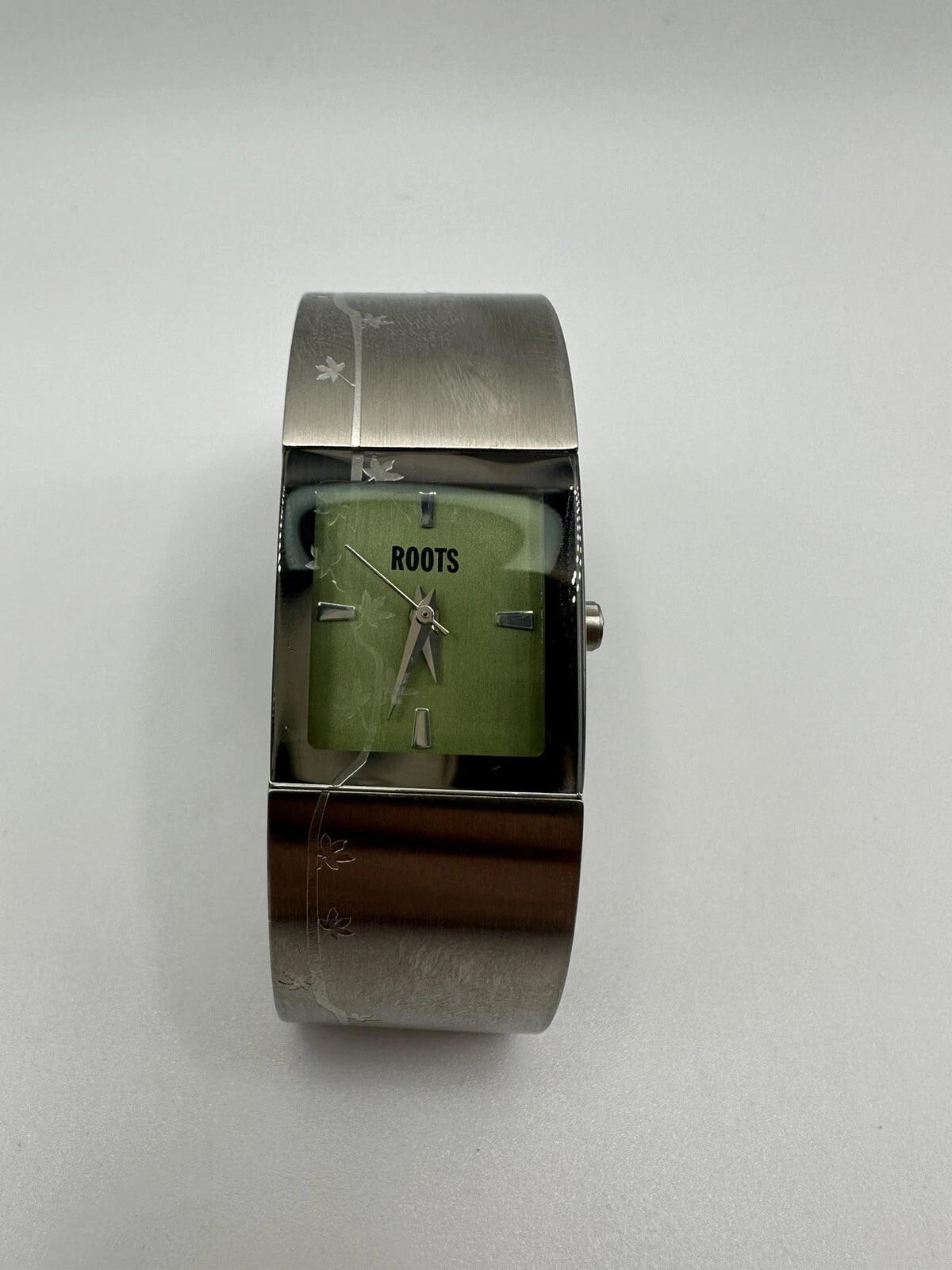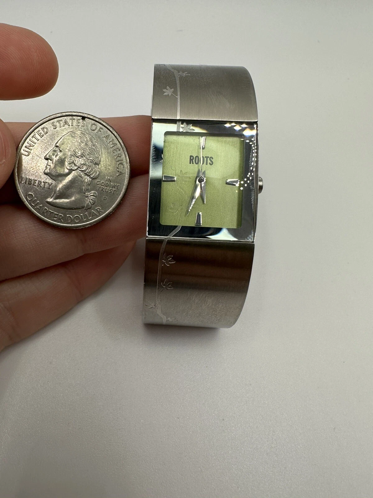Roots Steel Ladies Tank Bangle Watch Quartz With Box Green Face Flower Gift