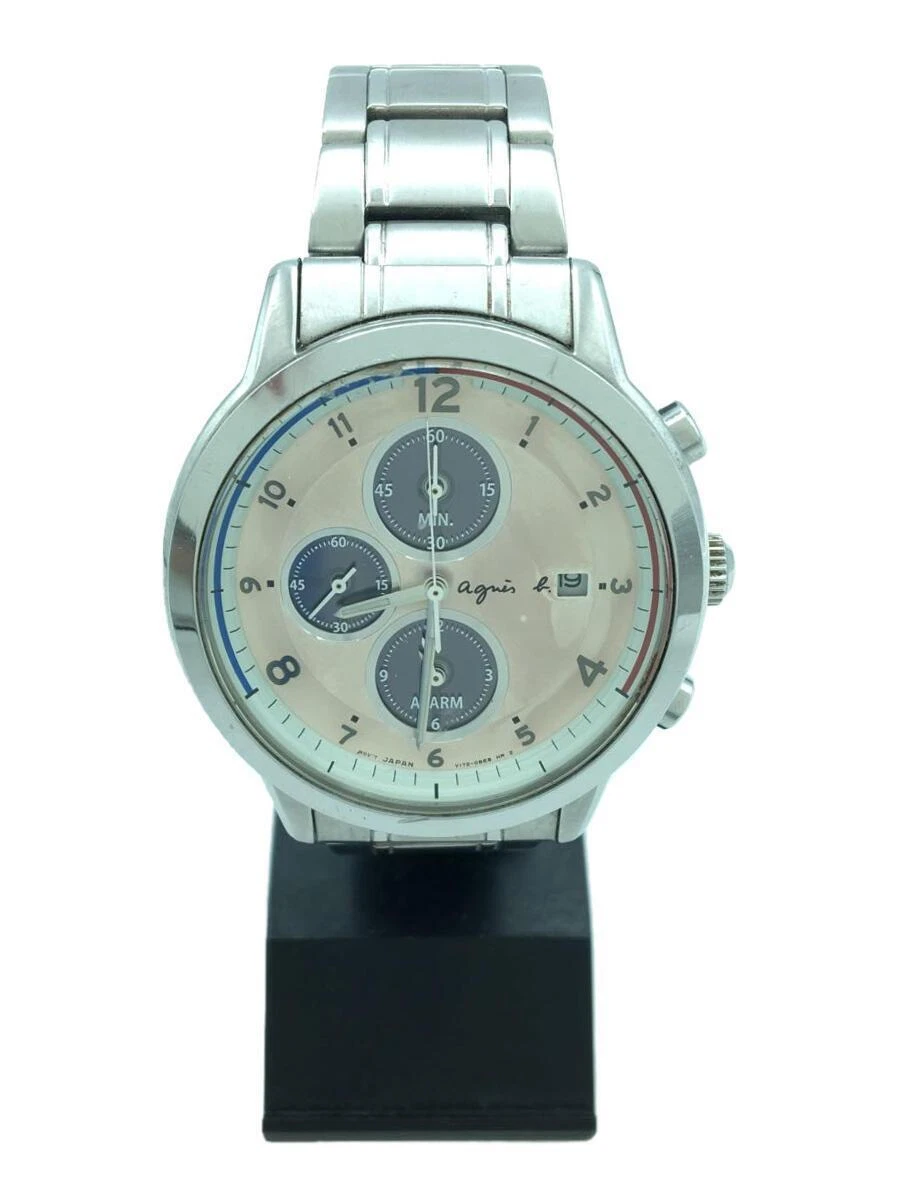 agnes b. Solar Analog Watch Stainless Steel Elegant Pink Silver Finish Near