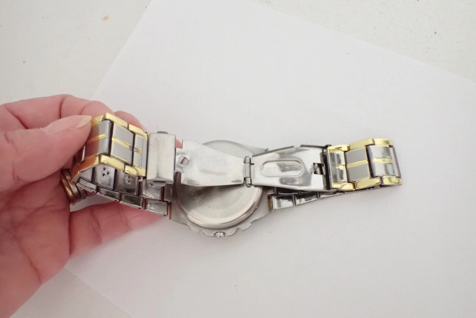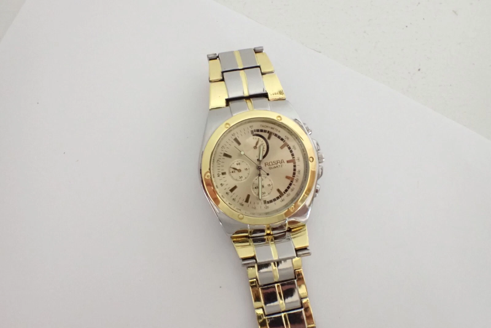 Rosra Mens Sports Watch NO 375 Two Tone Band New Battery Runs & Keeps Time 41mm