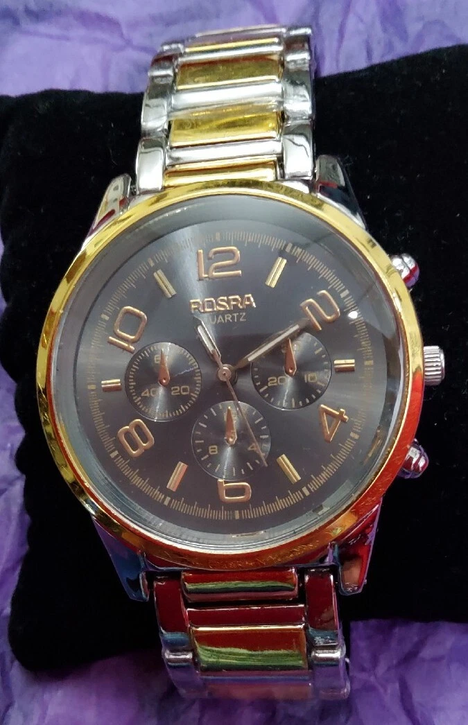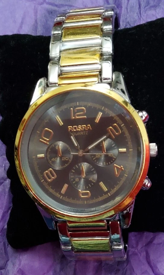 Rosra 40mm Two Tone Gold Dial Faux Chronograph Quartz Movement Fashion Watch New