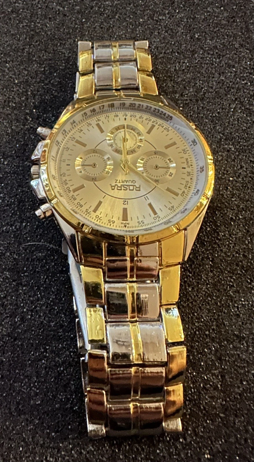 Large Men Sport Fashion Watch Teen Boy Two Tone Gold Quartz Dress Rosra