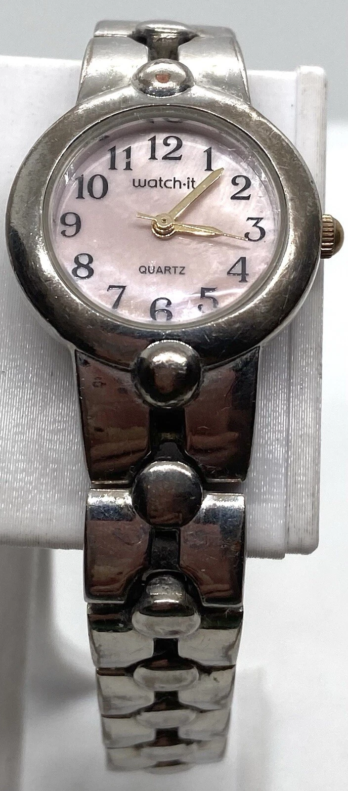 VTG WATCH-IT LADIES Watch New Battery Pink MOP Dial Silver Band Fits To 7-1/4”