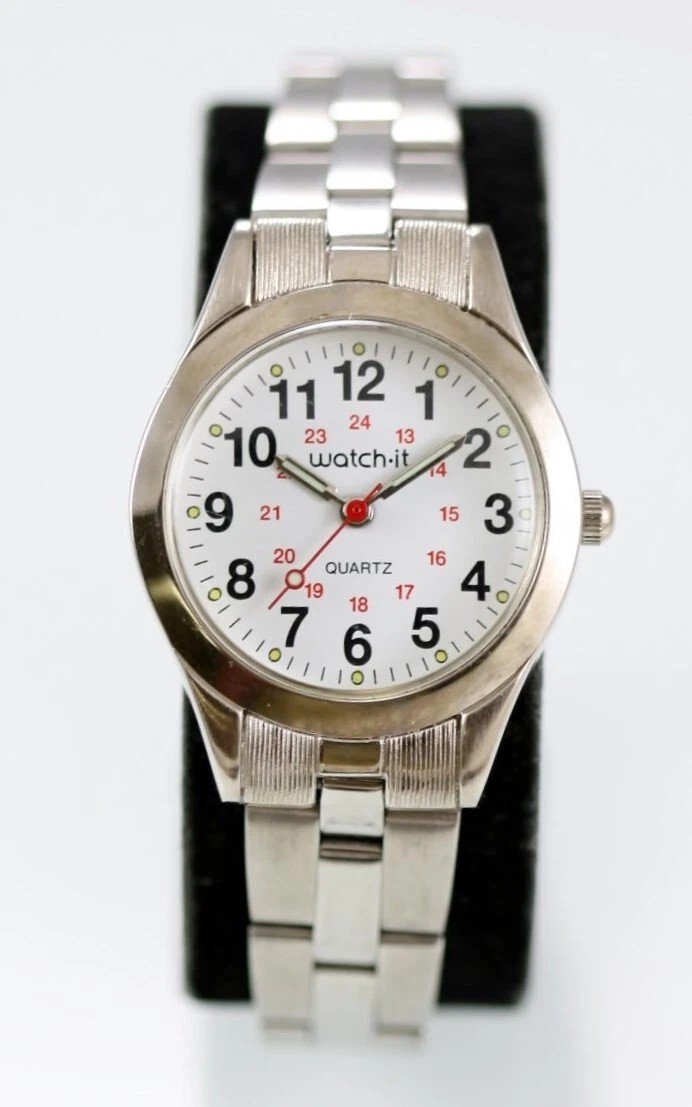Watch it Women Watch Stainless Steel Silver 24hr Water Res Battery White Quartz