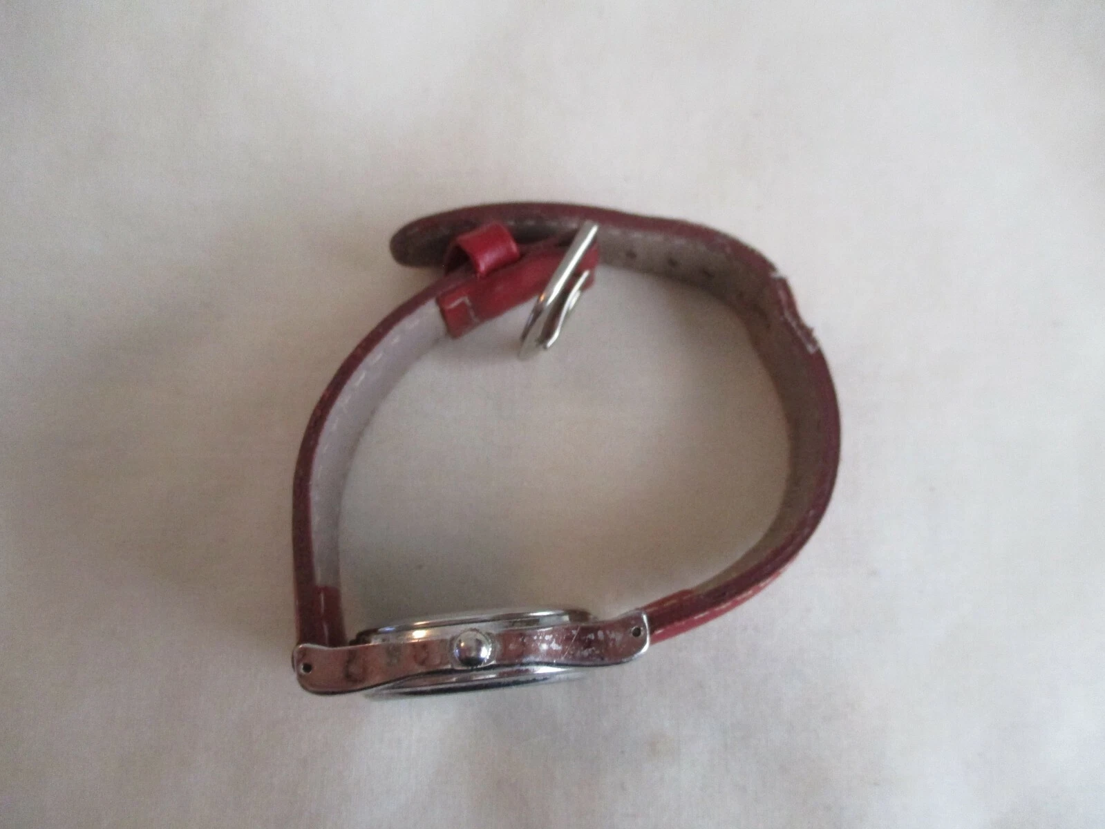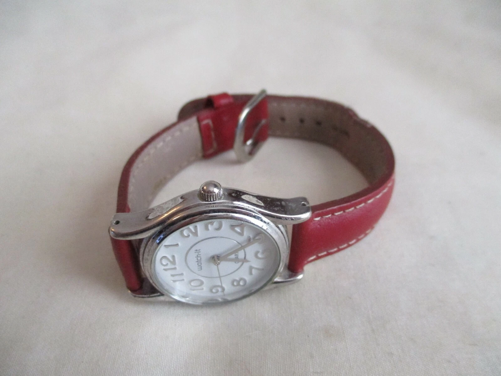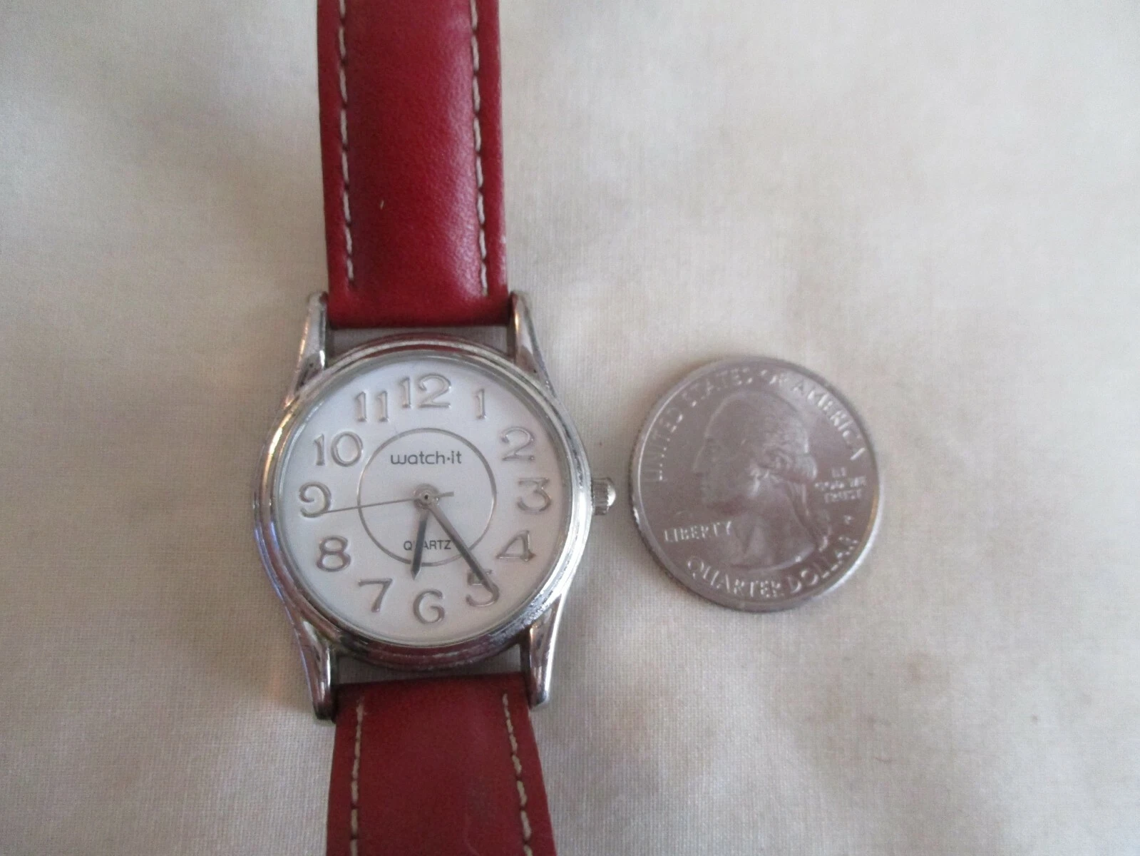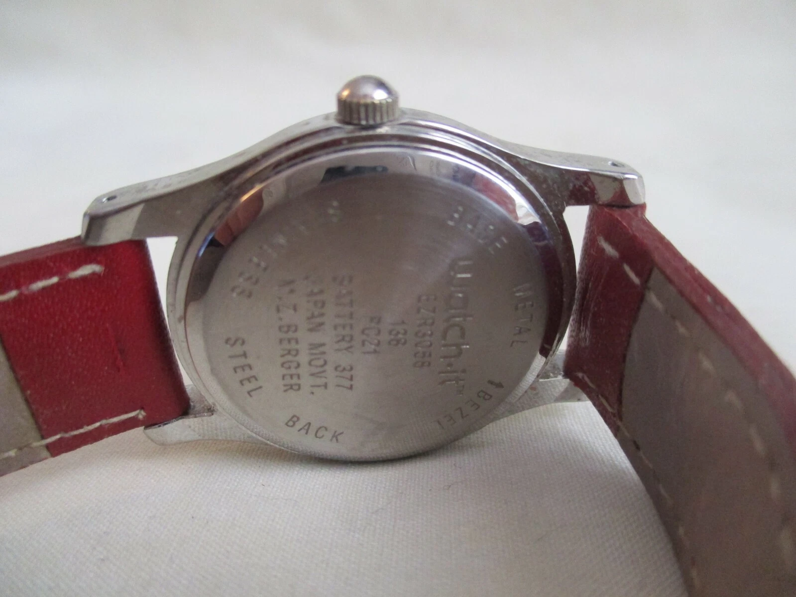 Watch-It Red & Silver Toned Wristwatch w/ Adjustable Buckle Band