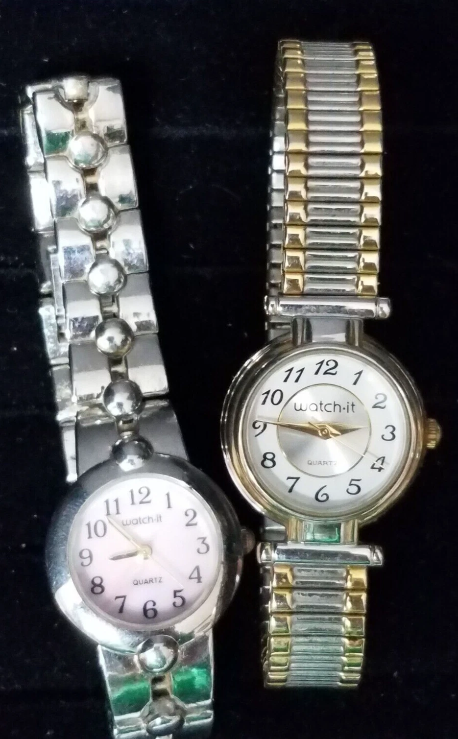 2 Women's Watch-It Analog Watches w/ Metal Stretch Bands - For Parts or Repair