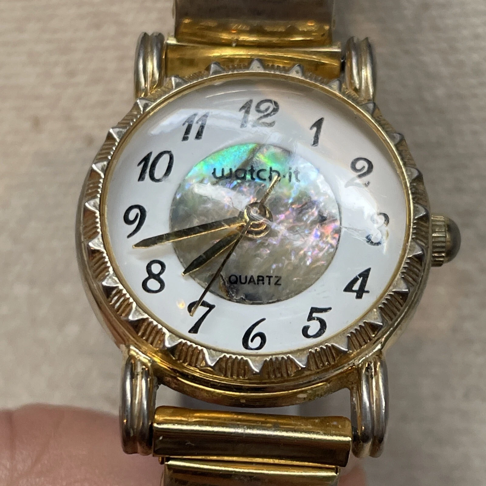 Vintage Watch-It Watch Womens Abalone Dial Gold Tone Quartz Fluted New Battery