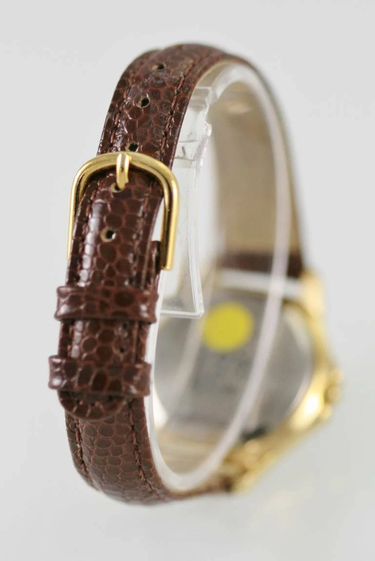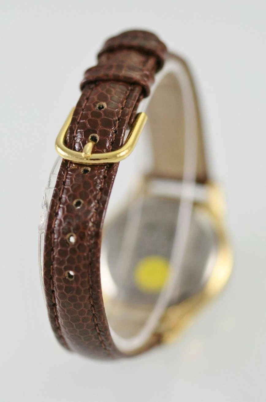 Watchit White Silver Womens Stainless Gold Battery Quartz Brown Leather Watch