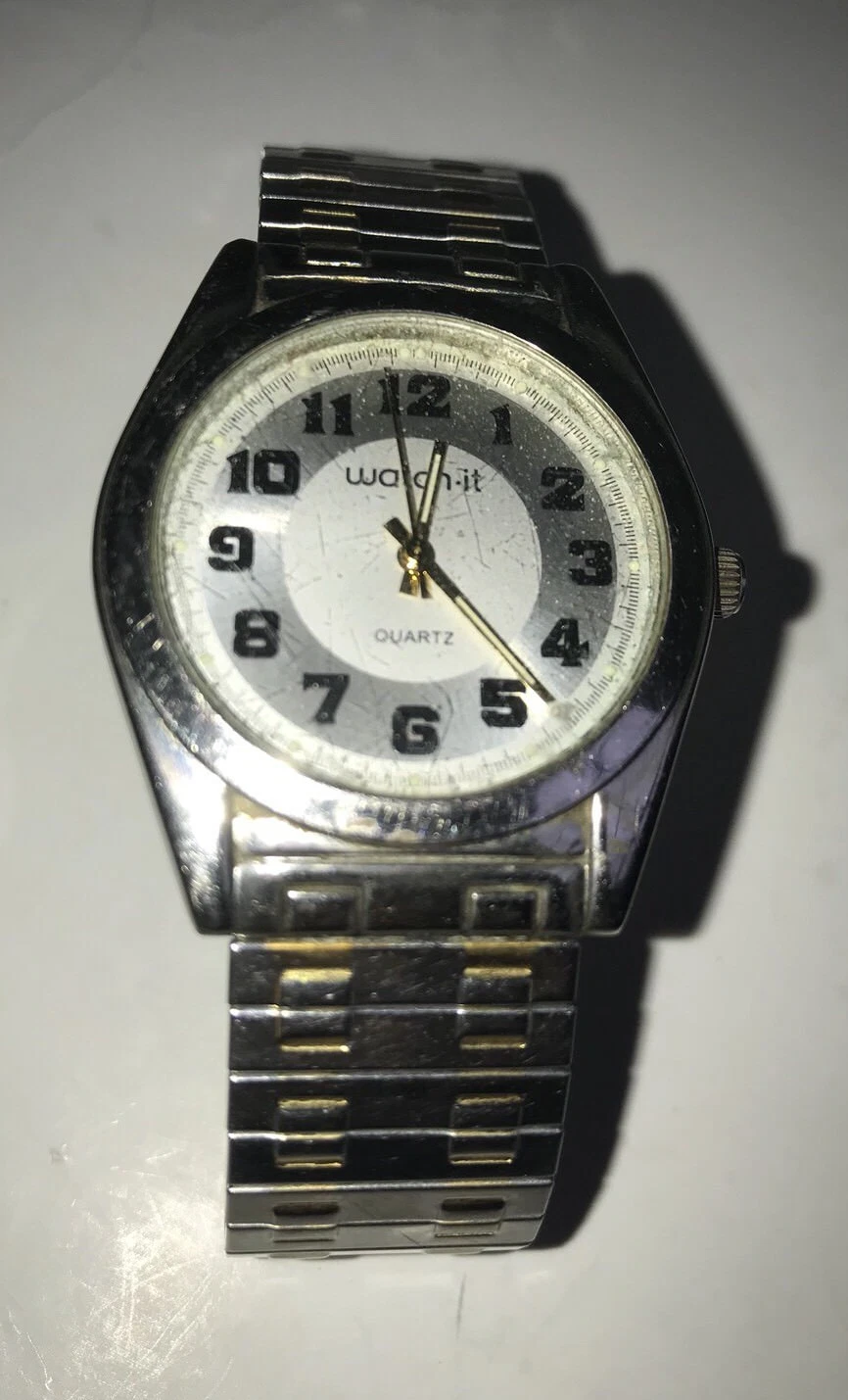 Large Numbers WATCH IT Watch Stainless Steel Stretchy Band White Face