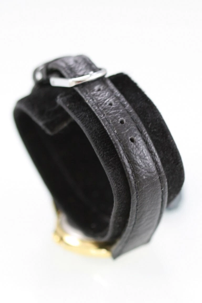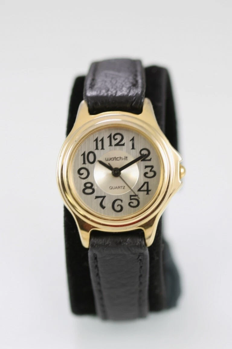 Watch it Women Watch Gold Stainless Steel WR Black Leather Battery Silver Quartz
