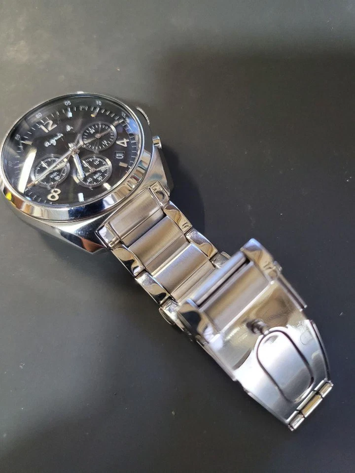 Agnes B. Vd53 Chronograph Watch Black Dial Battery Running