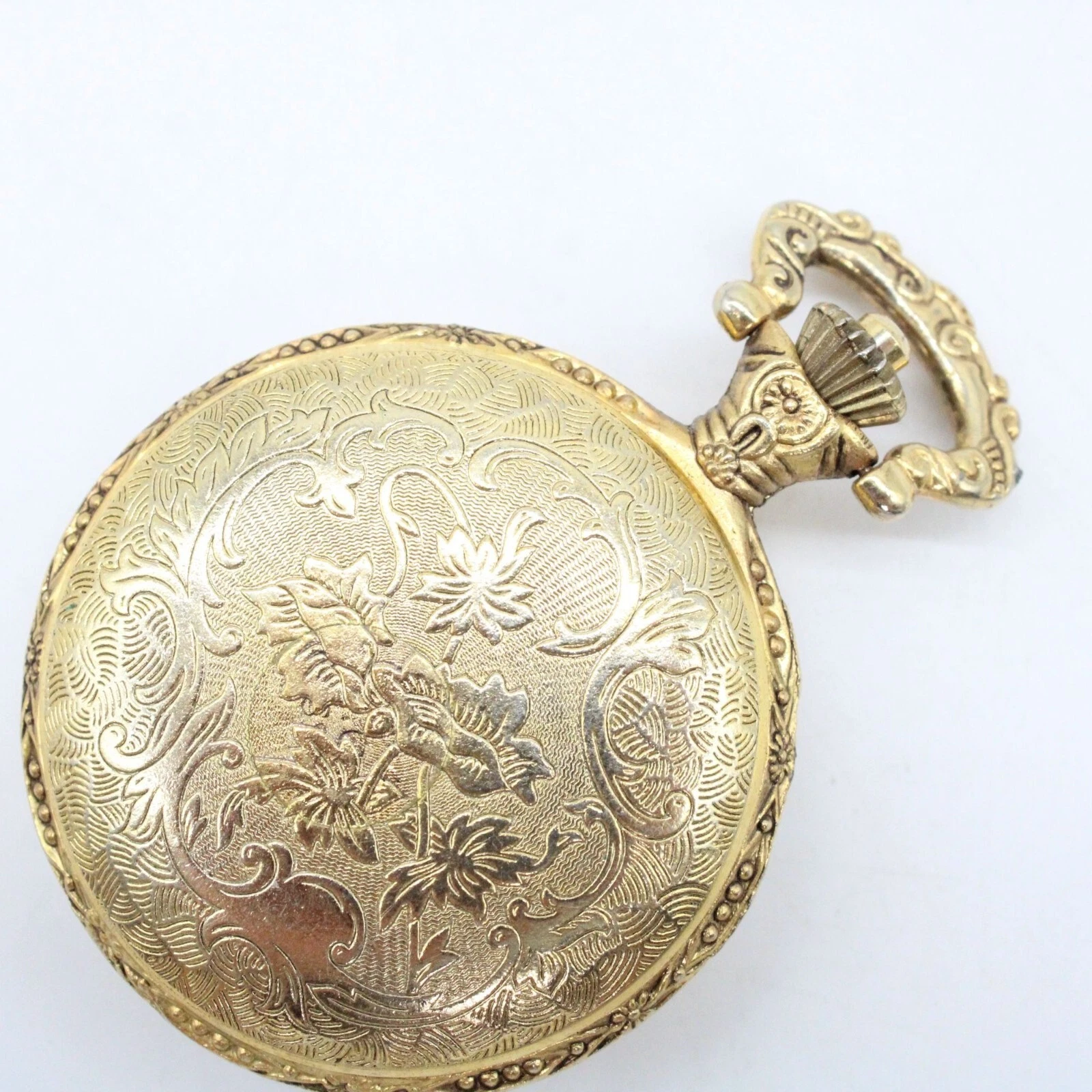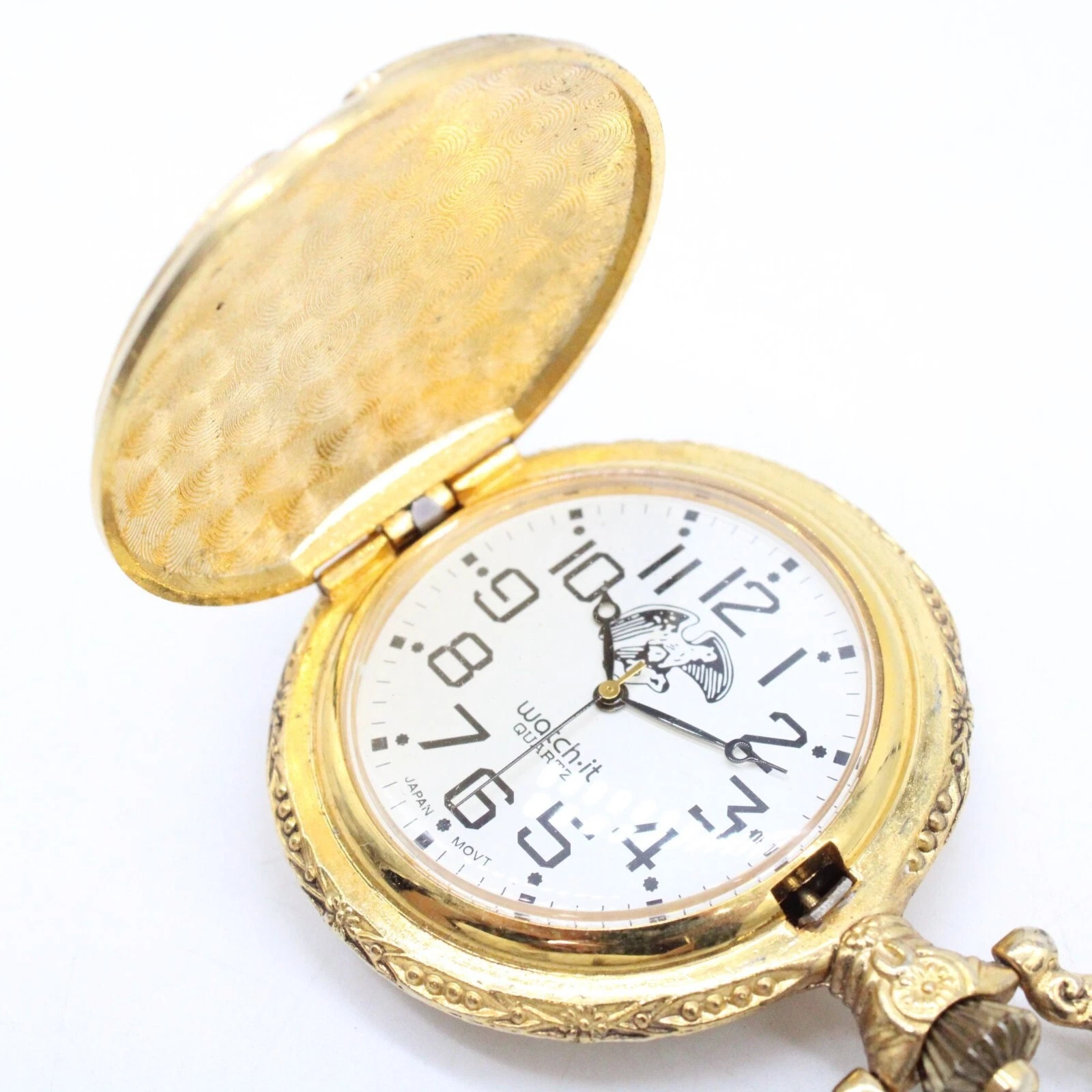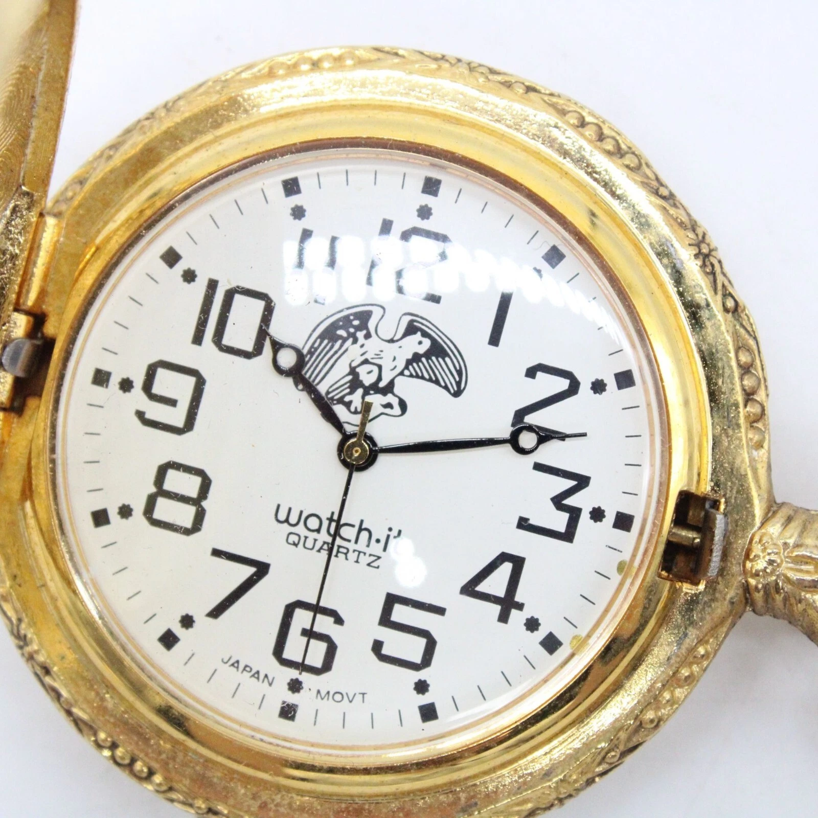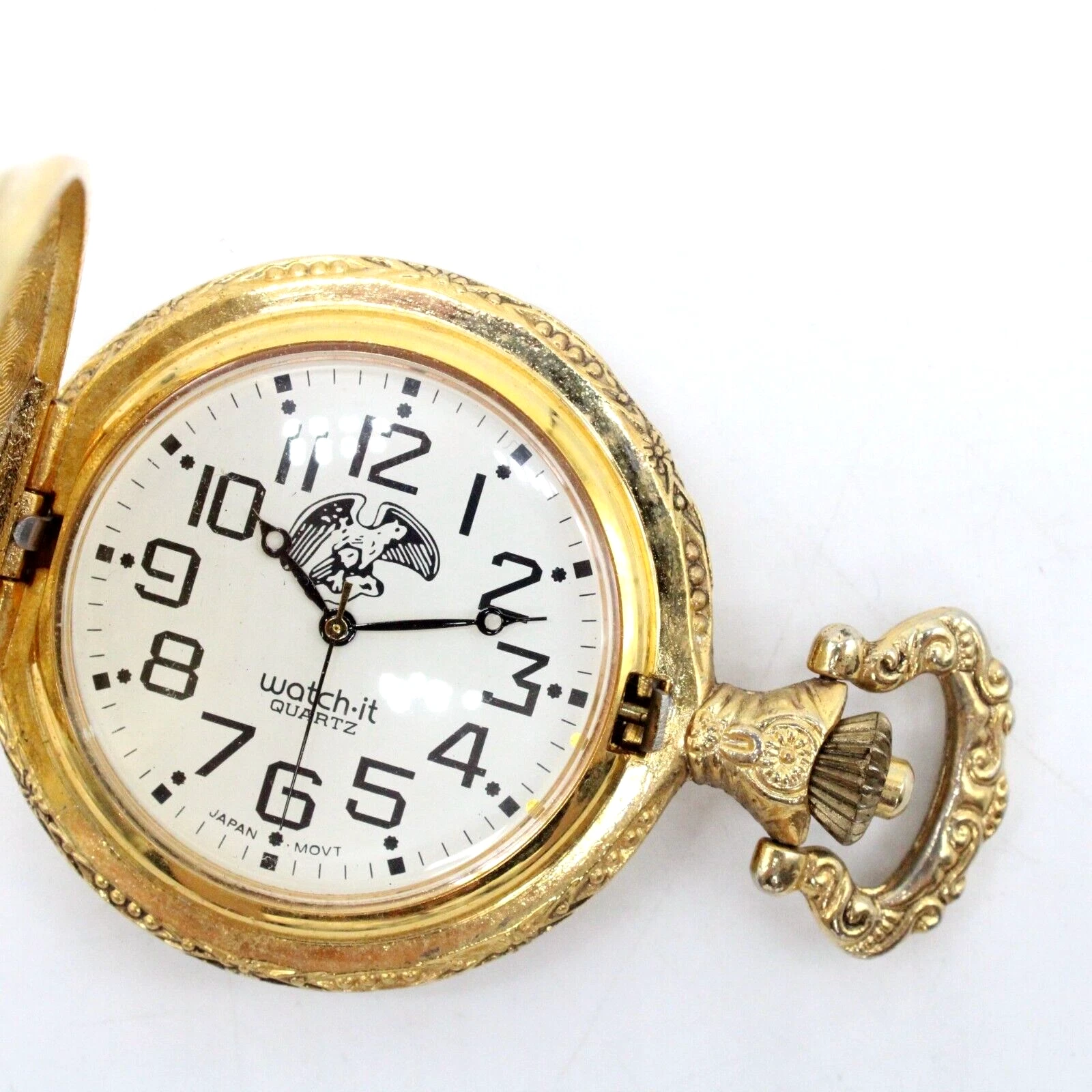 Vintage Watch It Pocket Watch Gold Tone Stainless Steel Classic Eagle White Dial
