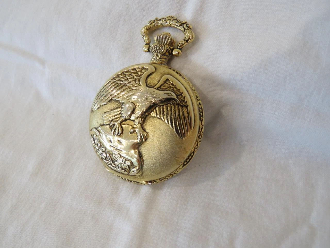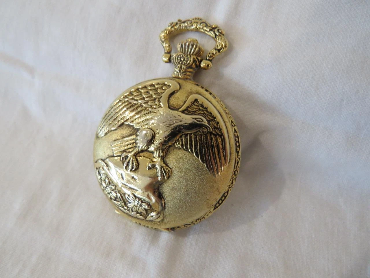 Watch-It Brand Gold Tone Pocket Watch "Bald Eagle" Full Hunter