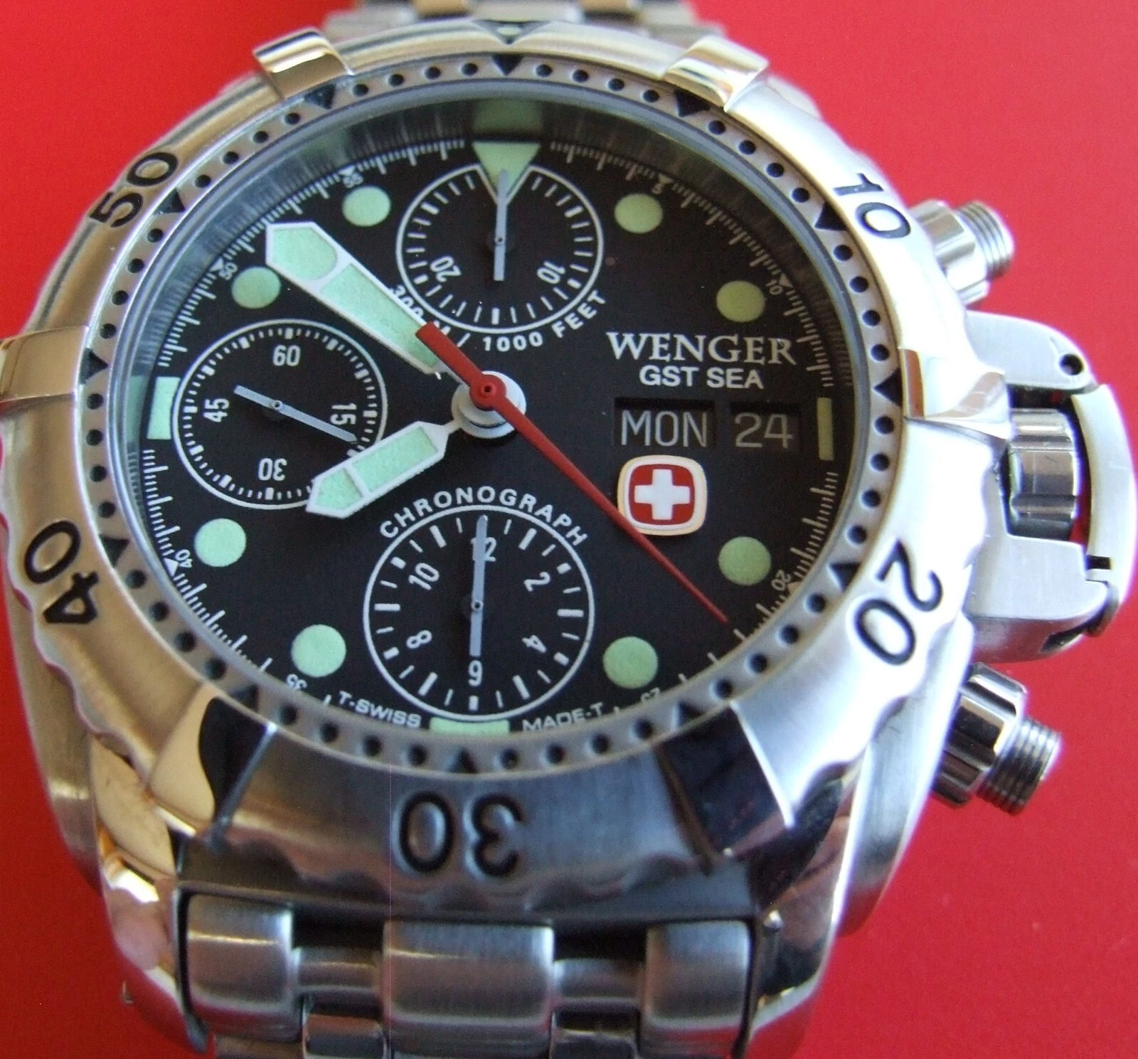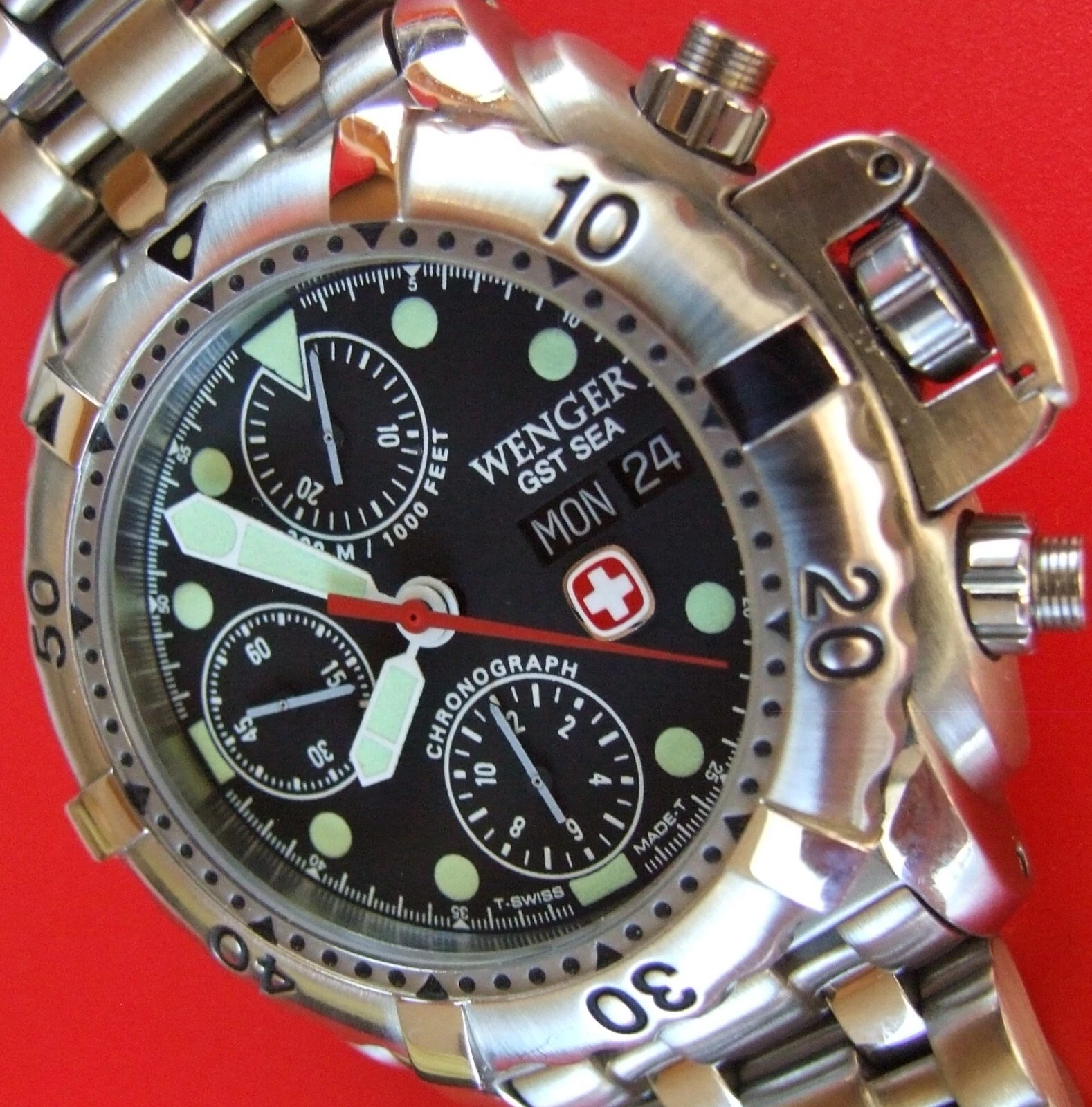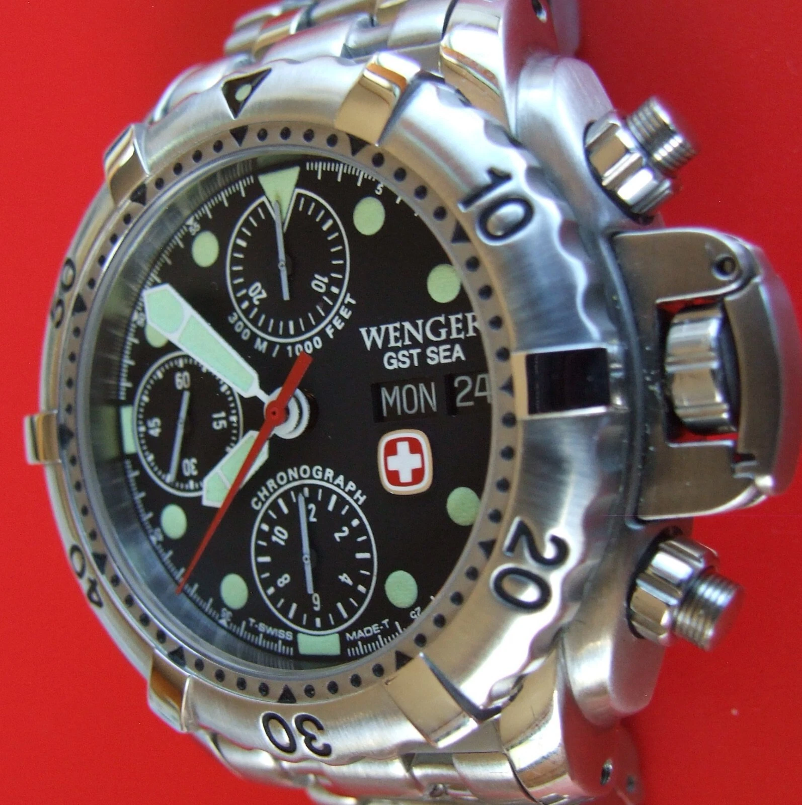 ULTRA Rare NOS WENGER GST SEA Swiss Army CHRONOGRAPH 300m DIVER AUTOMATIC+EXTRAS