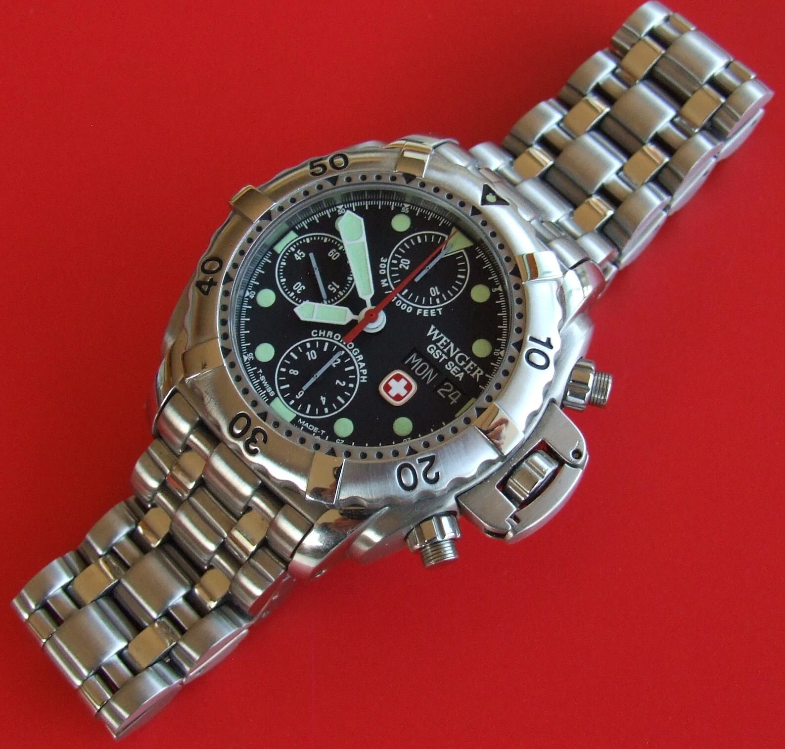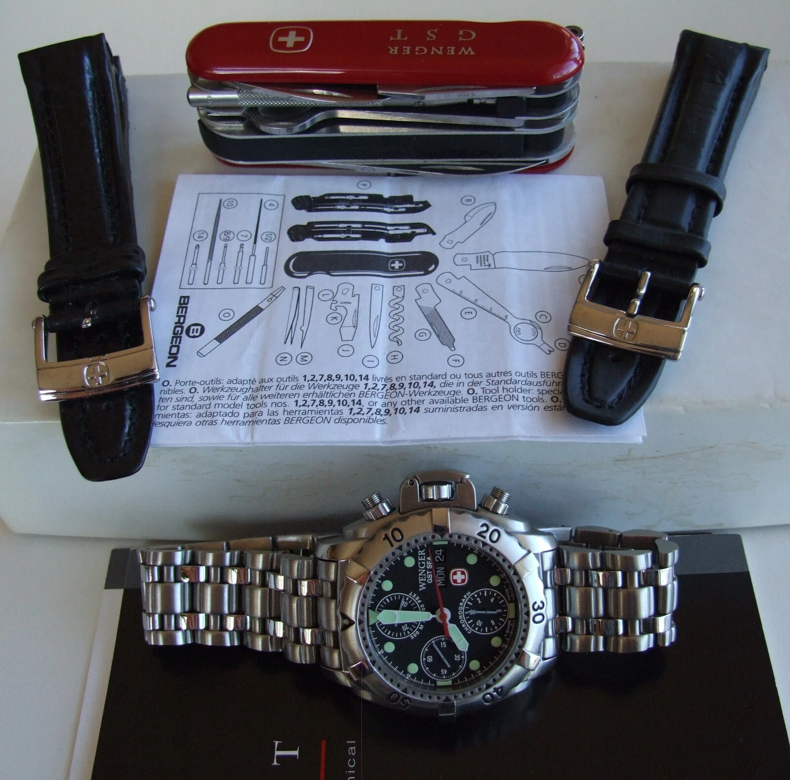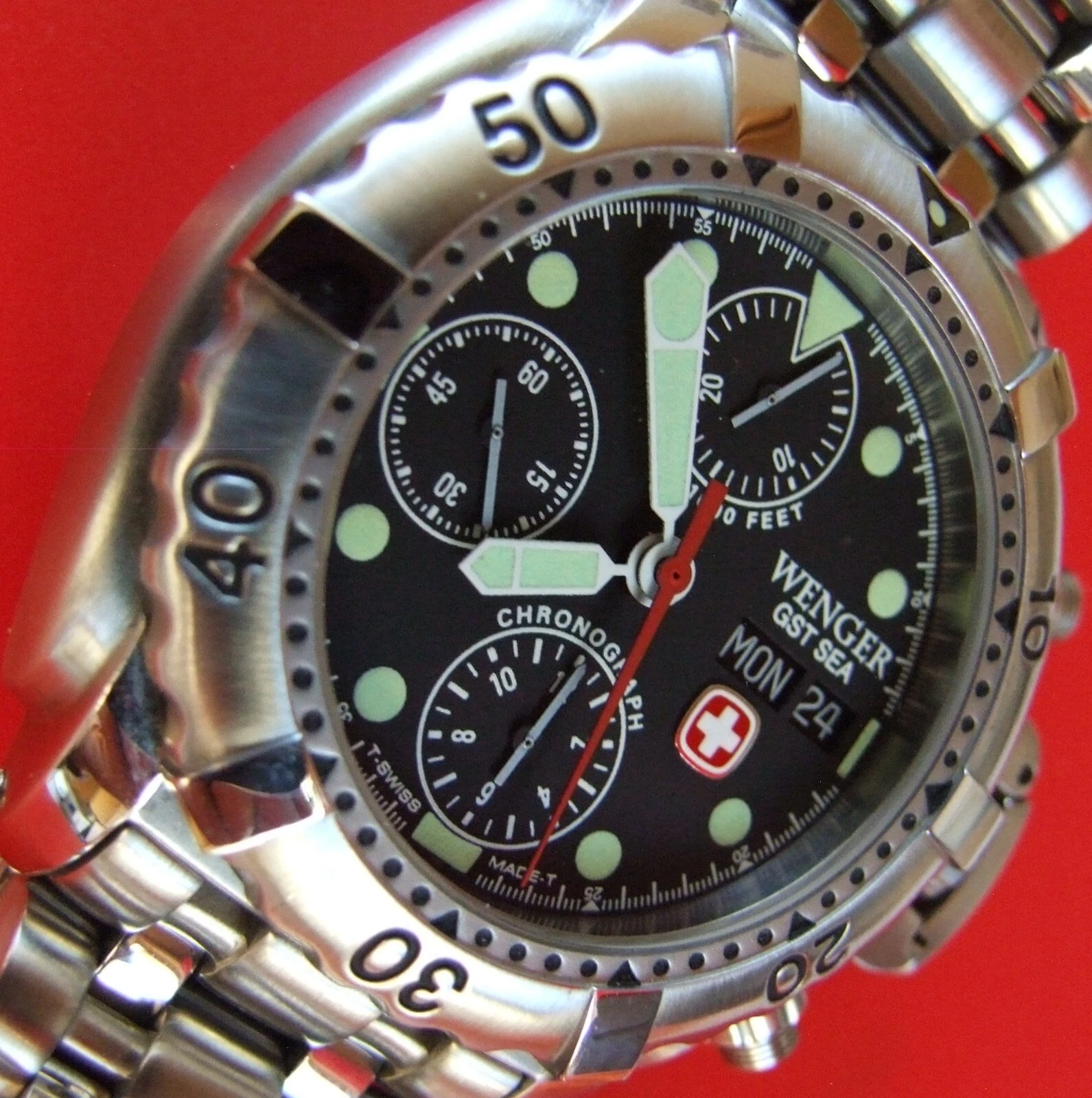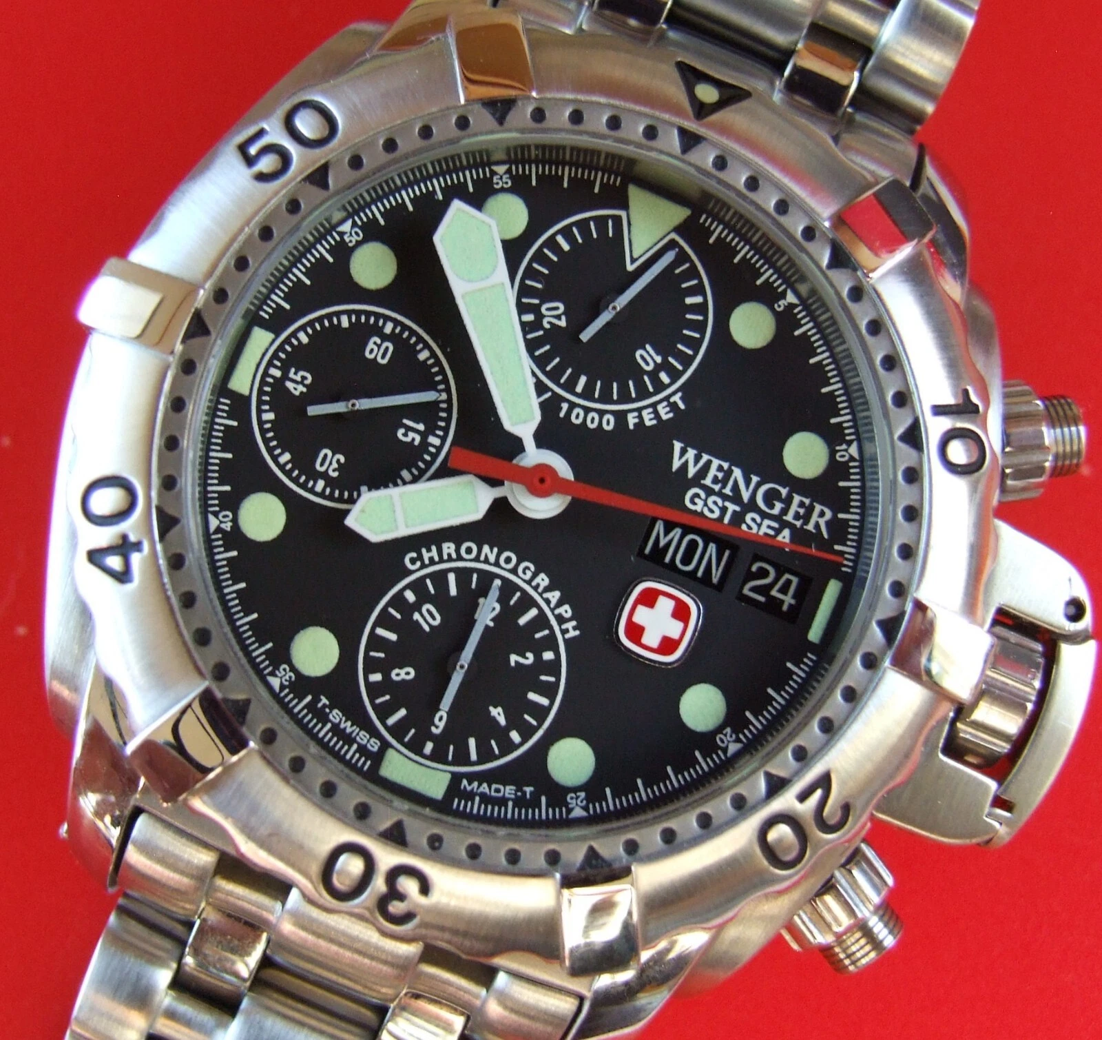ULTRA Rare NOS WENGER GST SEA Swiss Army CHRONOGRAPH 300m DIVER AUTOMATIC+EXTRAS
