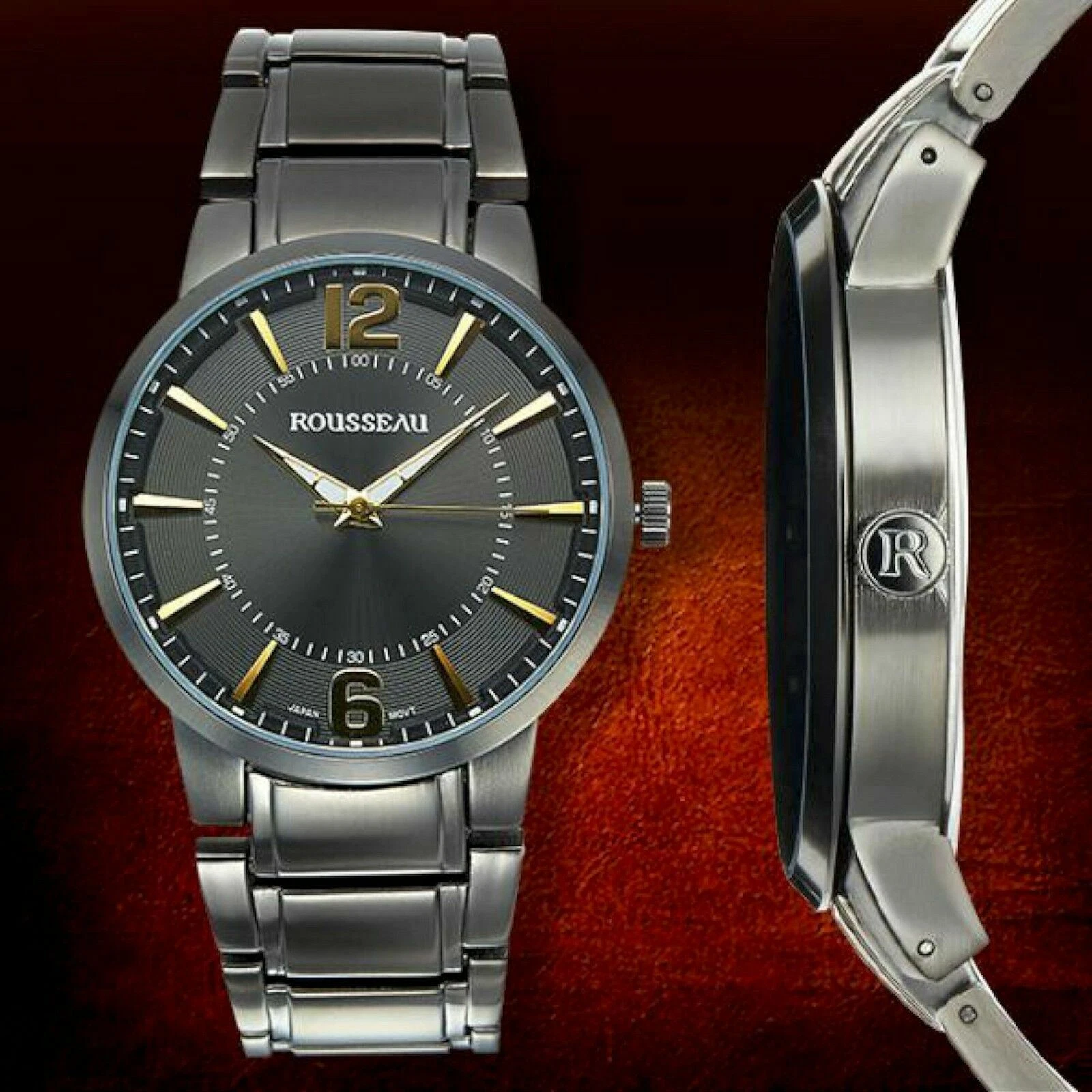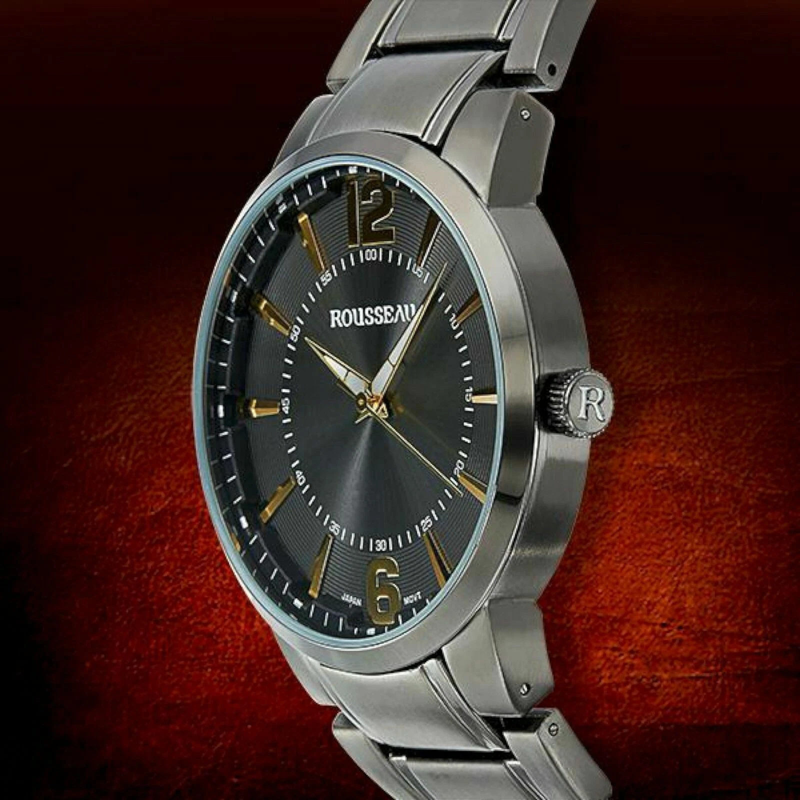 NEW Rousseau 9413 Men's Flury Glory GUNMETAL Band Watch 44mm Gold Black Dial