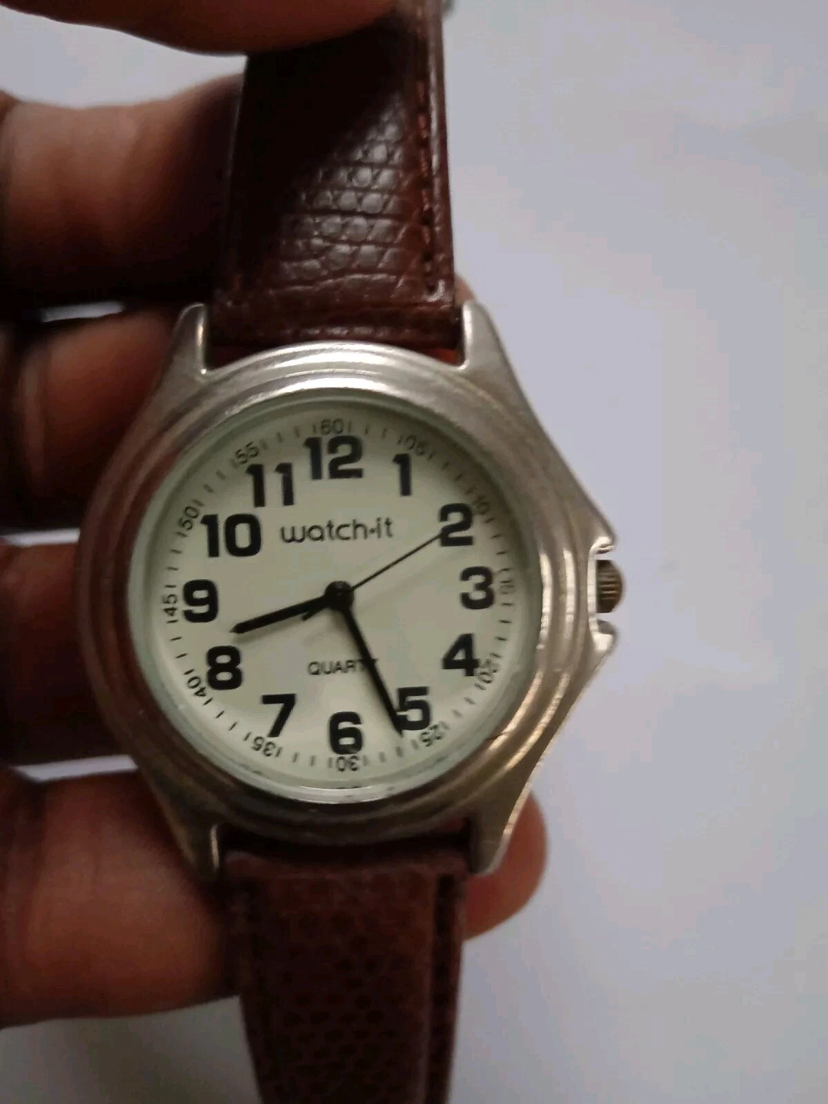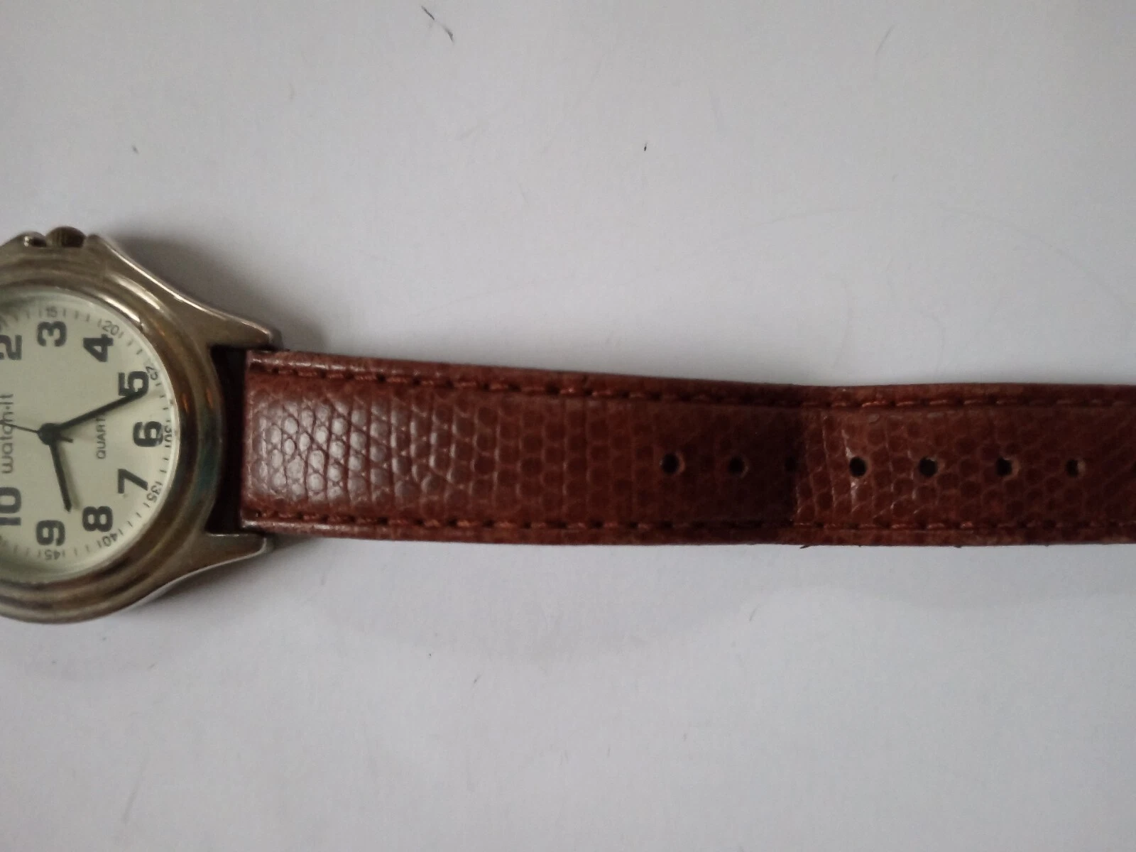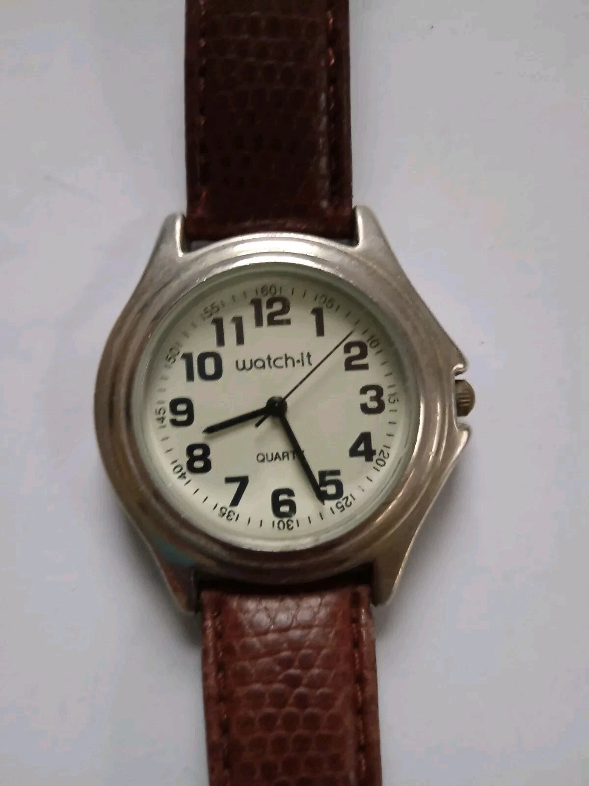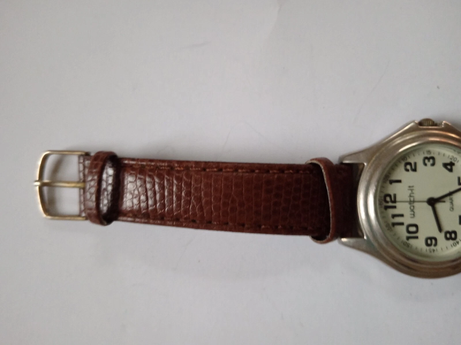 Watchit Quartz Analog White Dial Brown Leather Strap Men's Wristwatch
