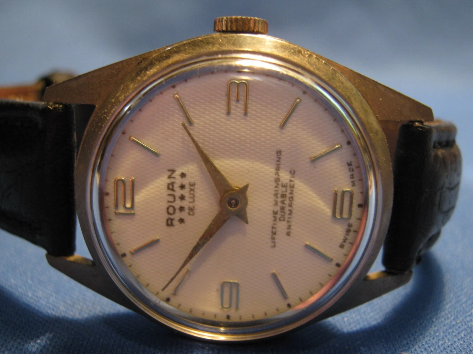 Rouan De Luxe Wind-Up Wristwatch Leather Strap circa 1950s