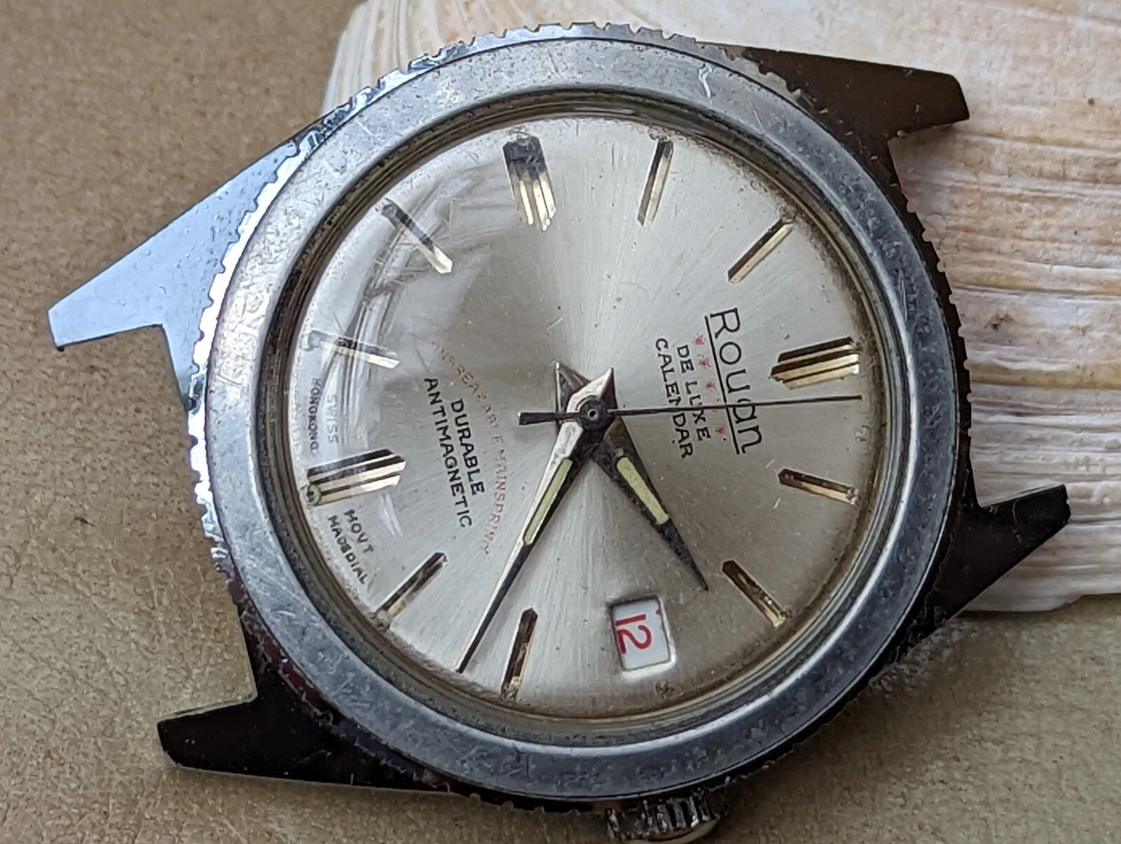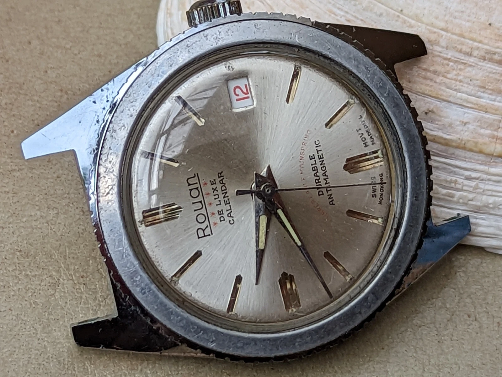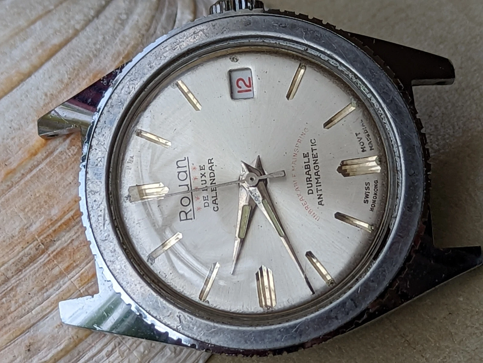 Vintage Rouan De Luxe Calendar Chrome-Plated Diver w/Red Date,Stealth Bezel