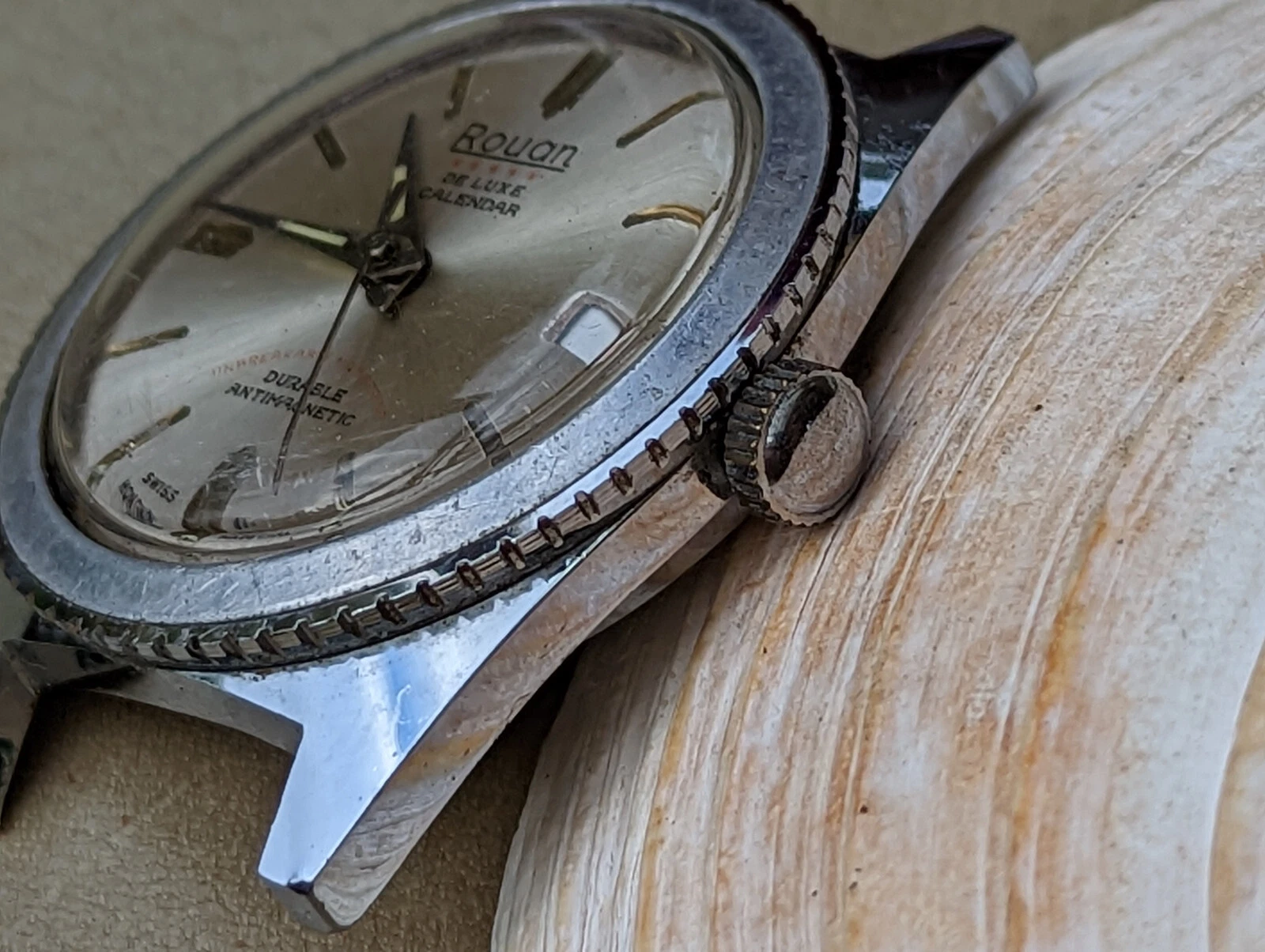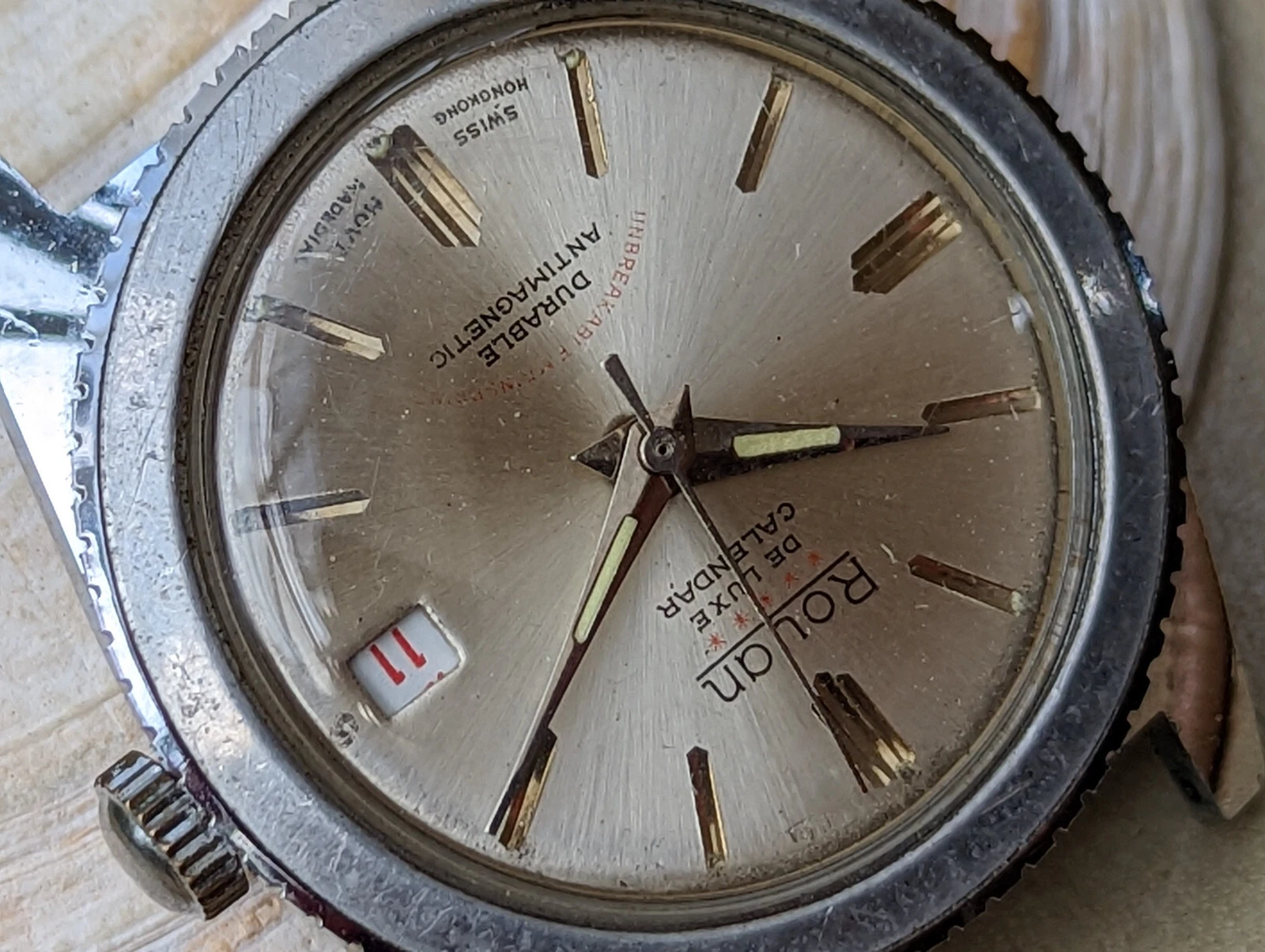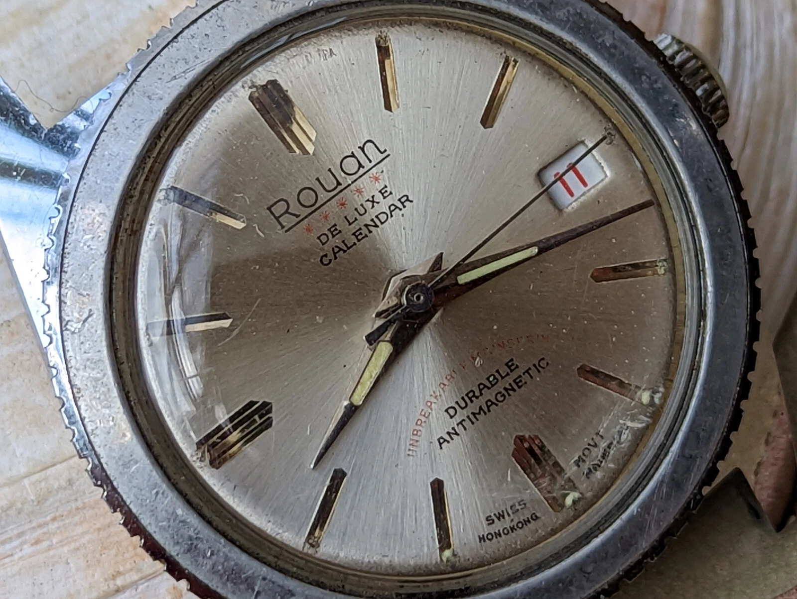 Vintage Rouan De Luxe Calendar Chrome-Plated Diver w/Red Date,Stealth Bezel