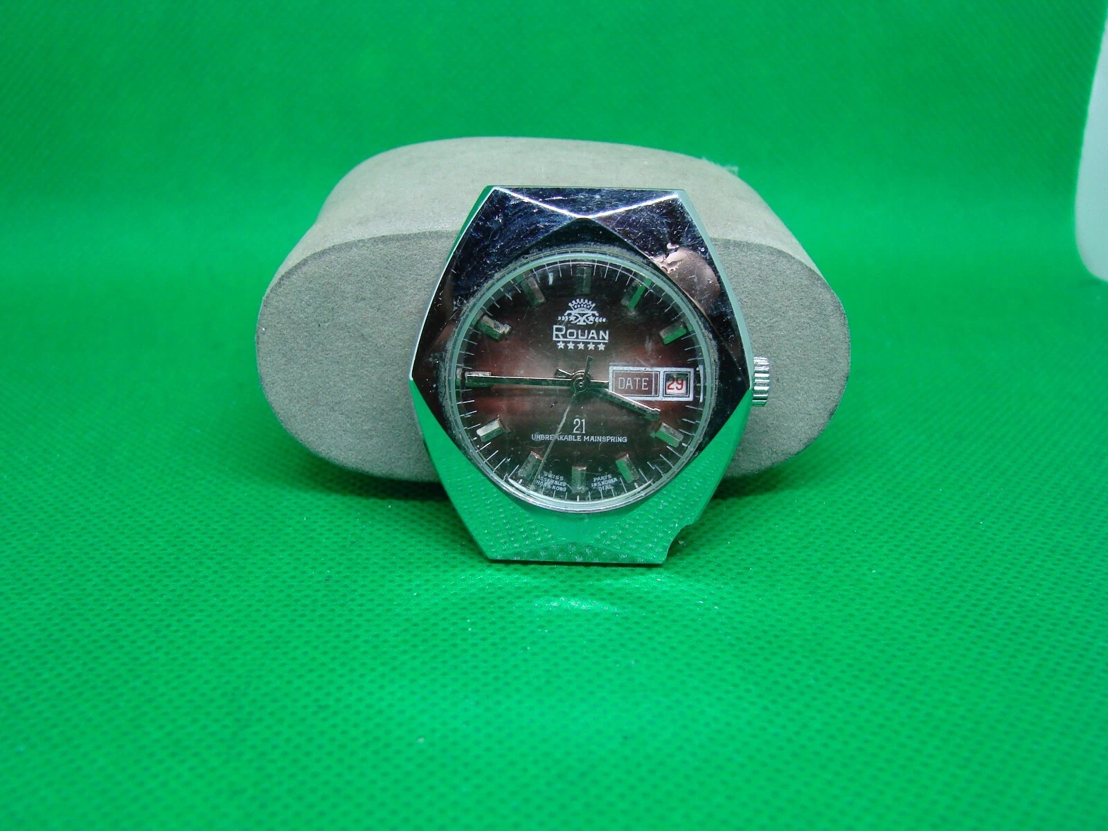 ROUAN KOREA DATE BROWN DIAL WRISTWATCH FOR PARTS/REPAIR! ll2