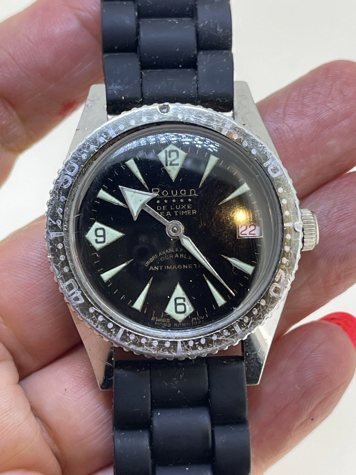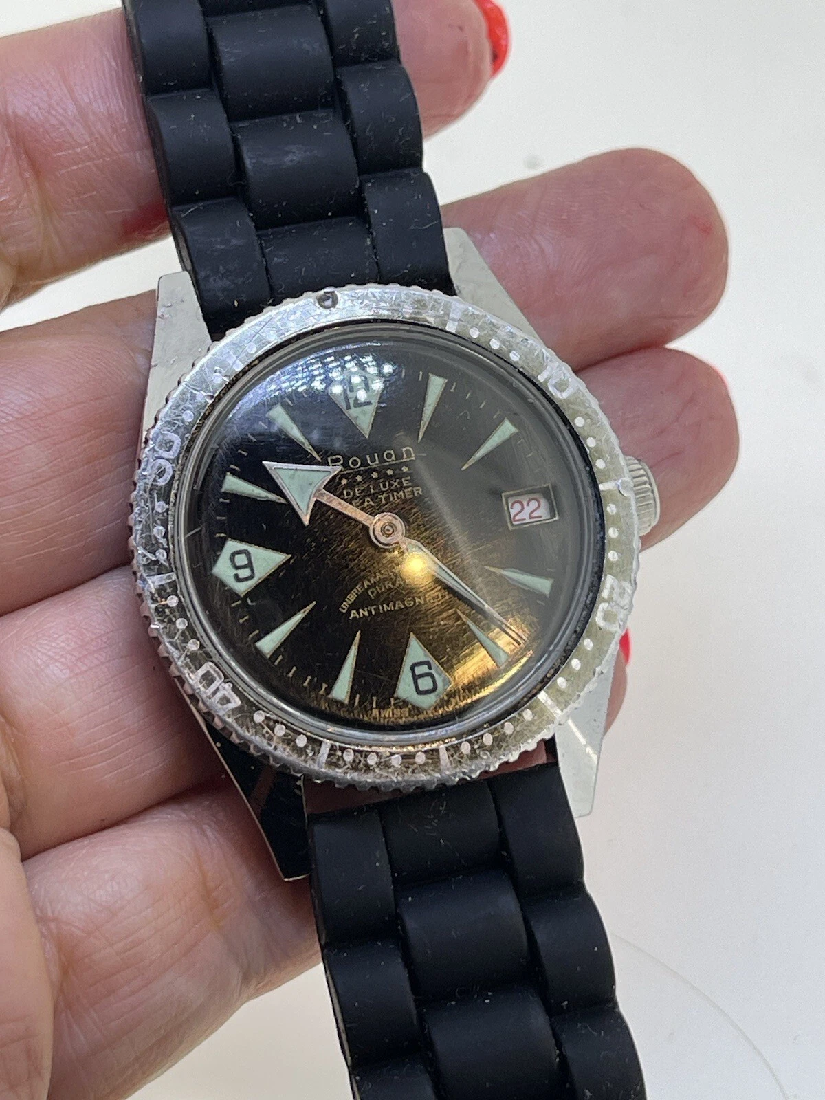 Vintage Rouan Deluxe Sea Timer Divers Mens Watch- 5 Stars Antimagnetic Running