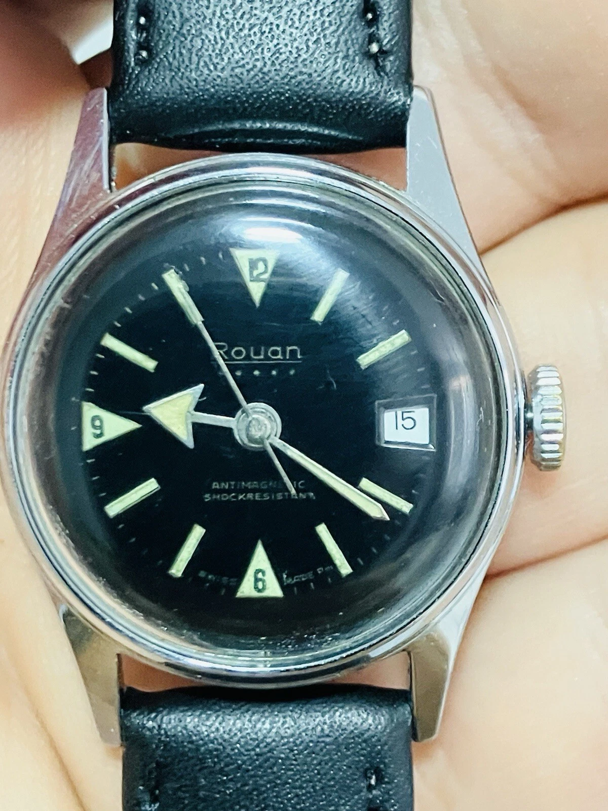 Rouan watch date women’s style vintage working Swiss made size 28 mm