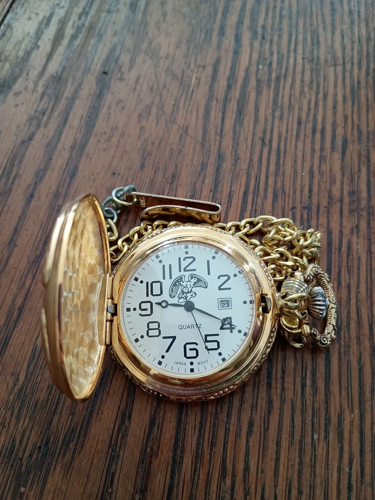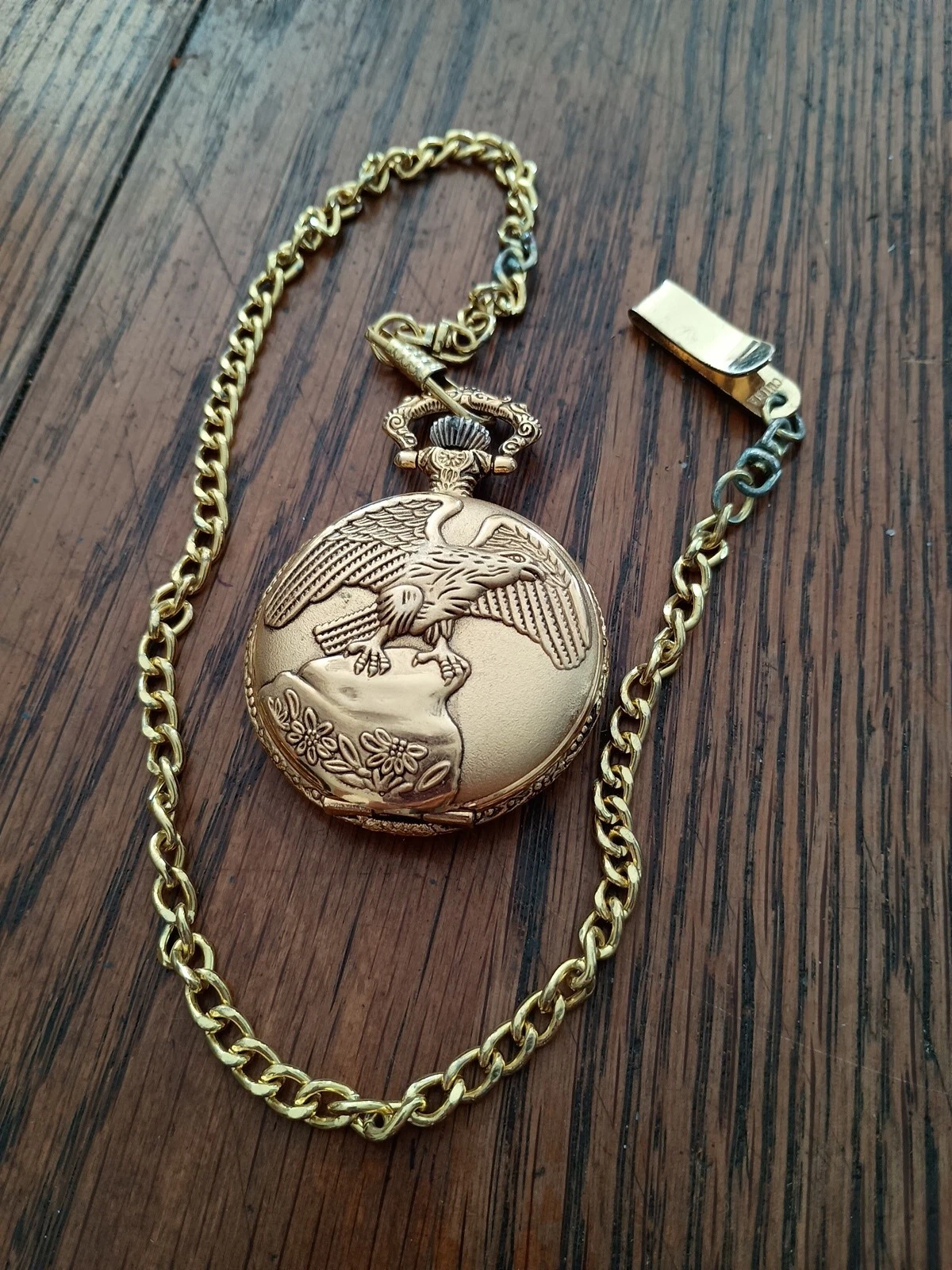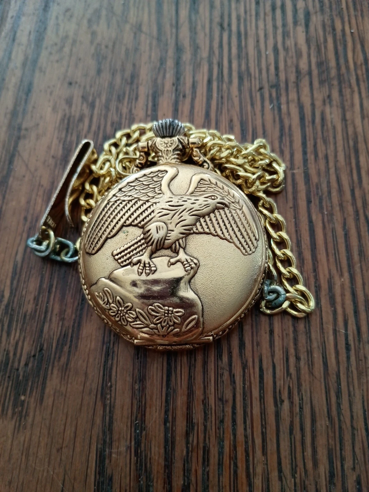 Vintage Pocket Watch Eagle Japan Gold Tone MOVT