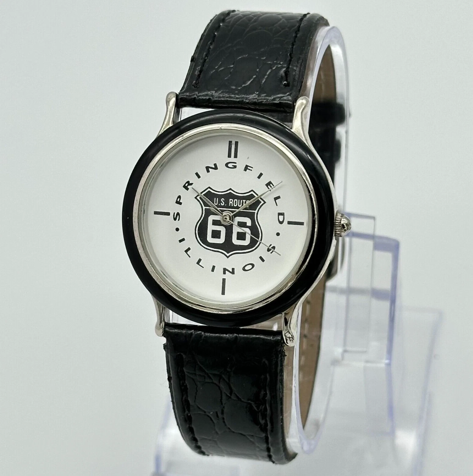 Unisex ROUTE 66 Springfield, Illinois Silver & Black Tone 33mm Watch, Leather