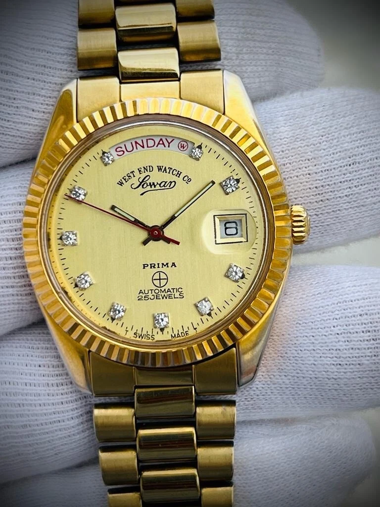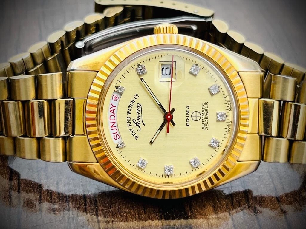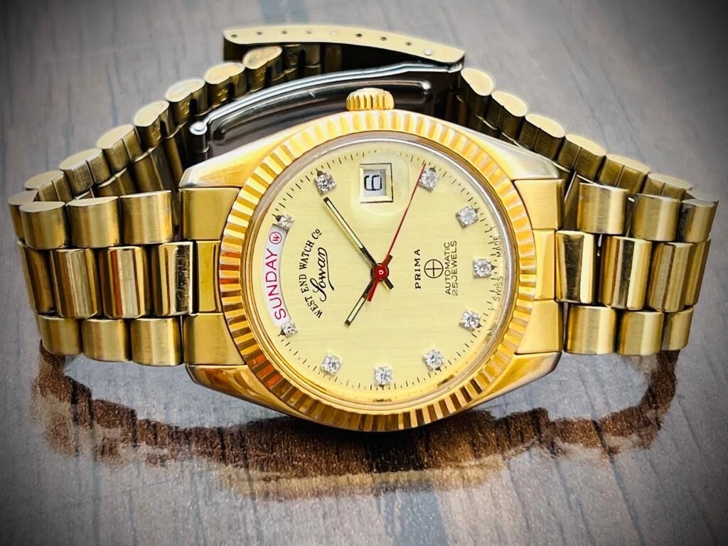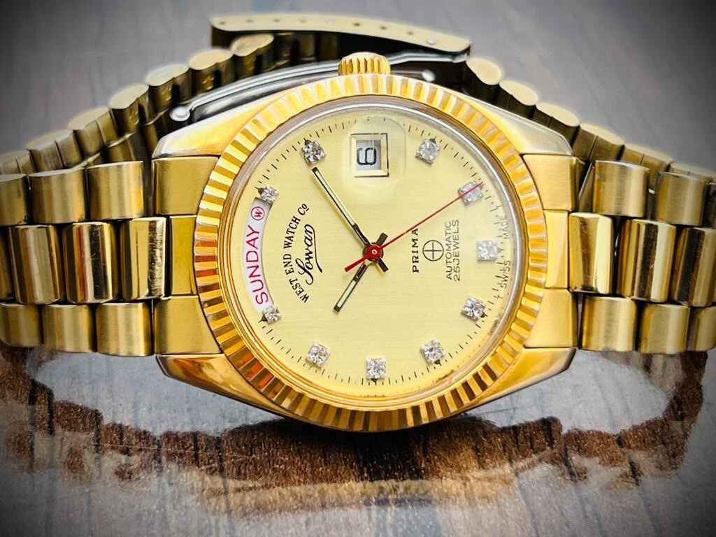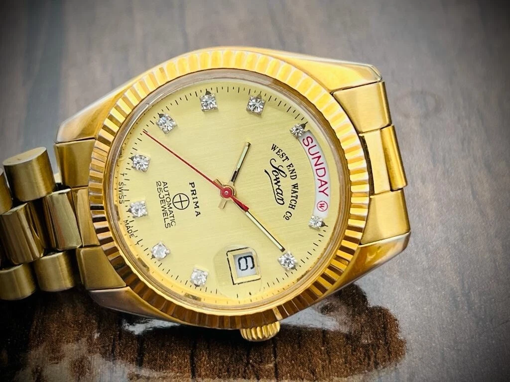 Vintage NOS West End Co President Diamond 37mm All Gold, Automatic Gents Watch