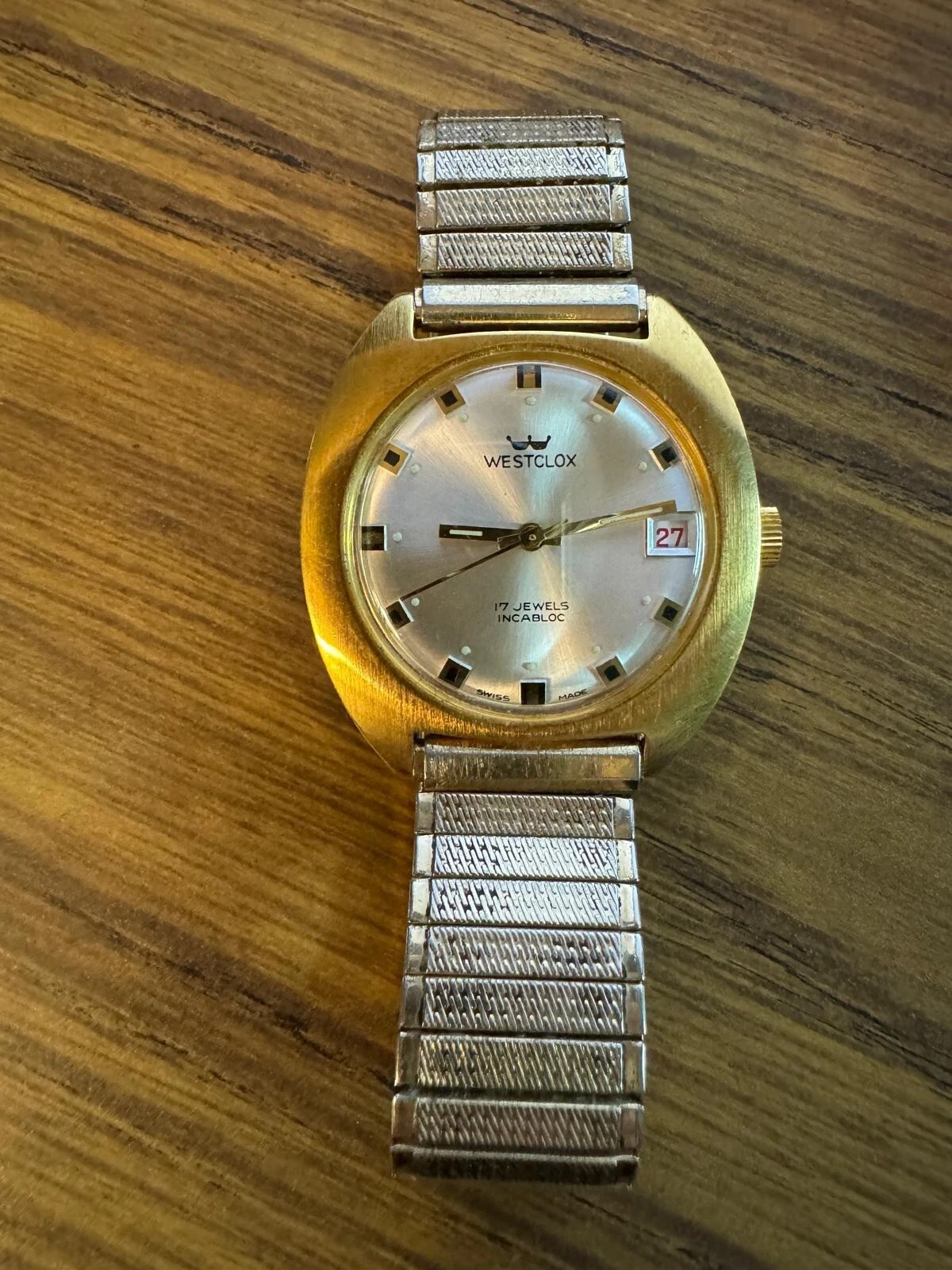 Vintage Westclox 17 Jewels Swiss Made Watch Gold-Plated Case Incabloc Movement
